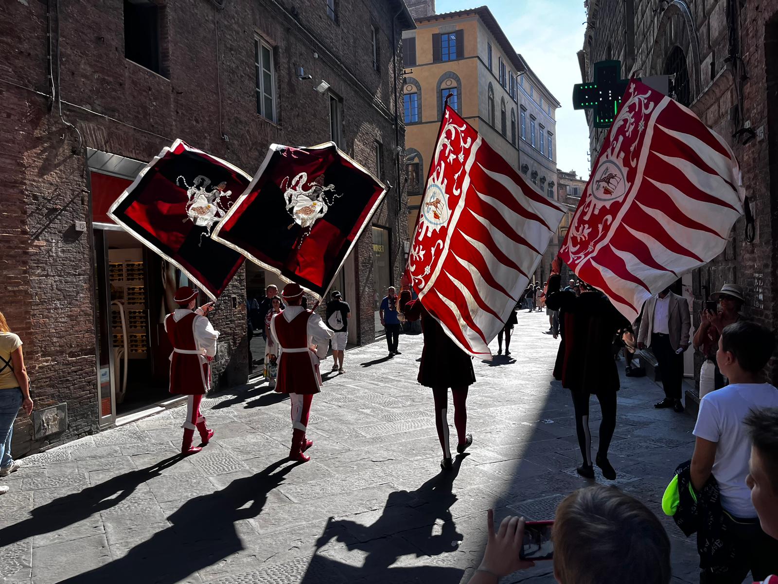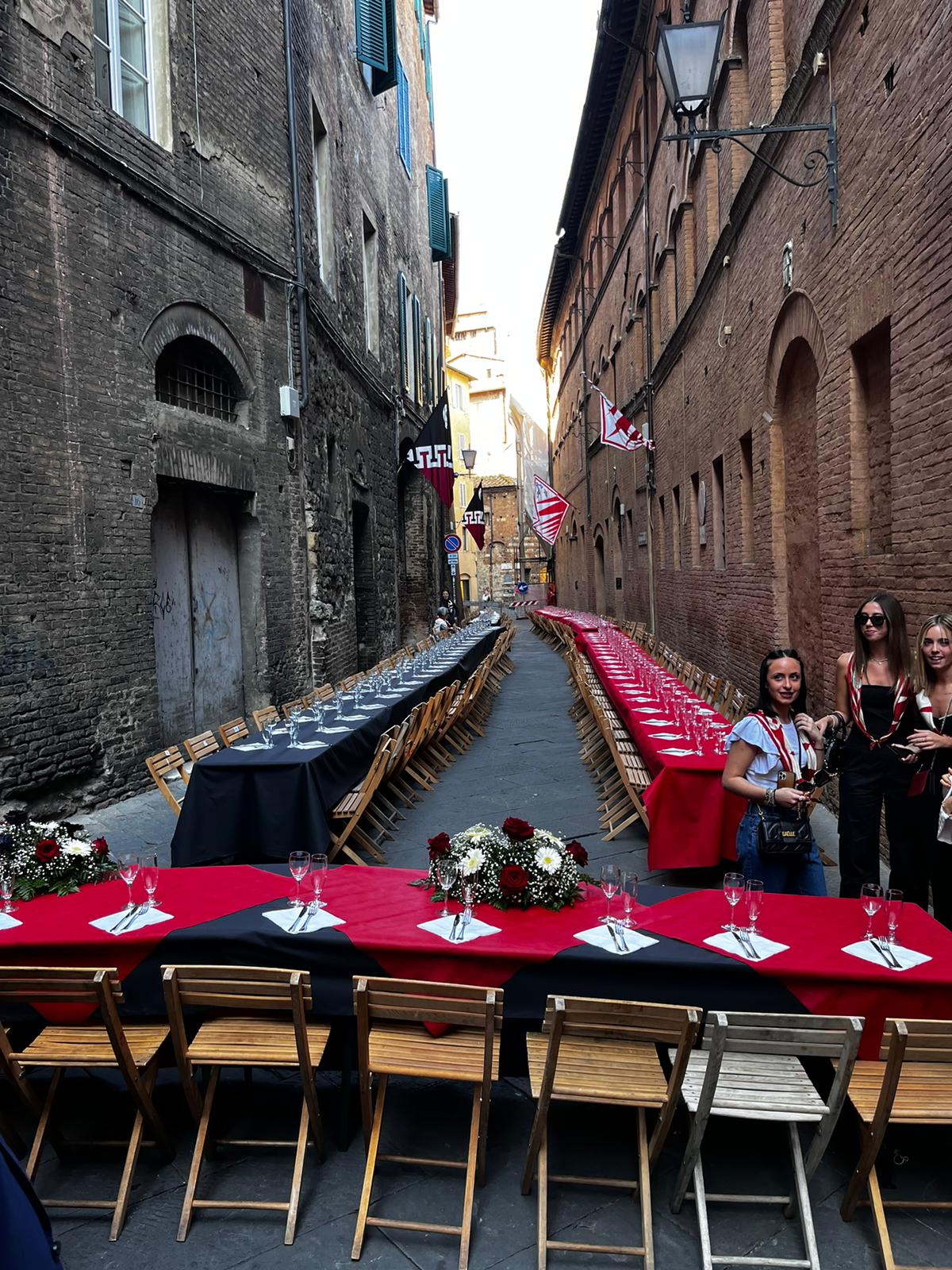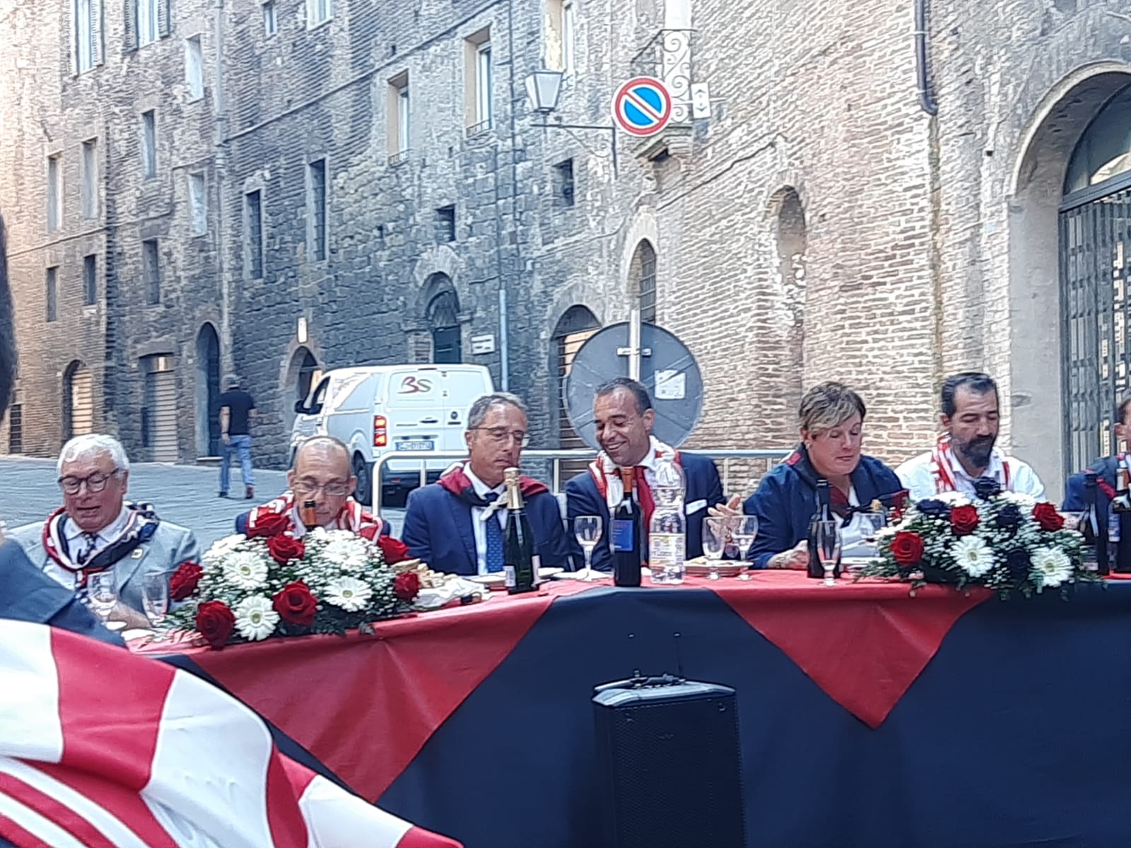 Le contrade di Civetta e Giraffa hanno festeggiato oggi insieme a pranzo i 100 anni dalla nascita dell’alleanza tra le due consorelle. Un’alleanza datata 1923: dopo le sbandierate congiute nei due territori, in Piazza Tolomei e Provenzano, i due popoli si sono ritrovati in via Sallustio Bandini per il pranzo congiunto alla presenza dei rispettivi contradaioli e dirigenze, nel corso del quale è stata servita anche una torta celebrativa.