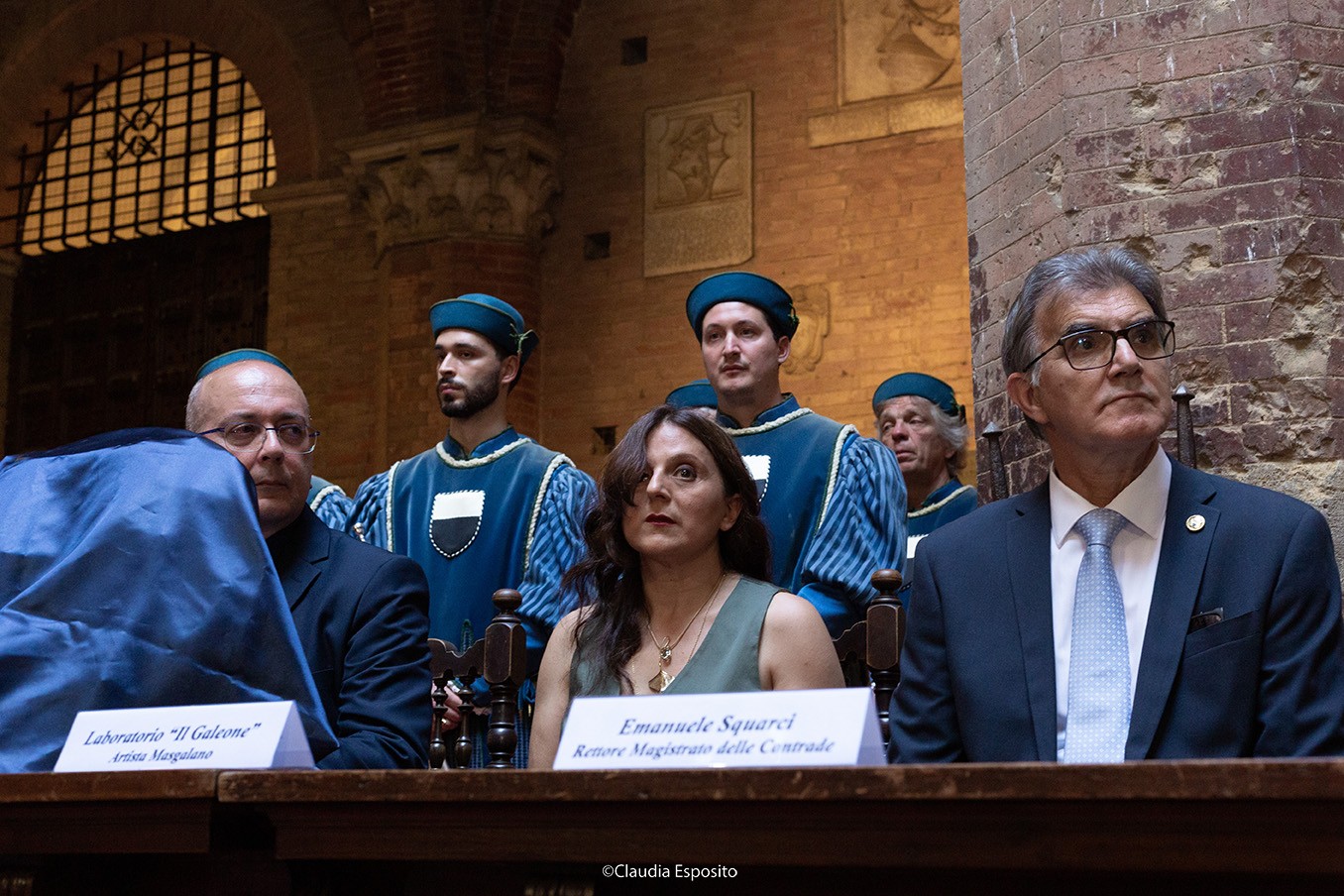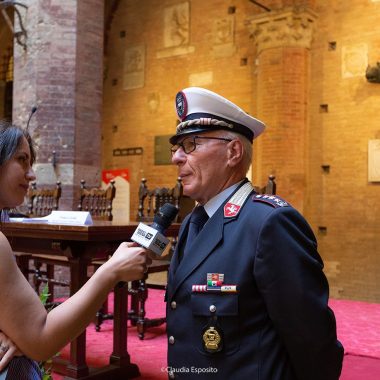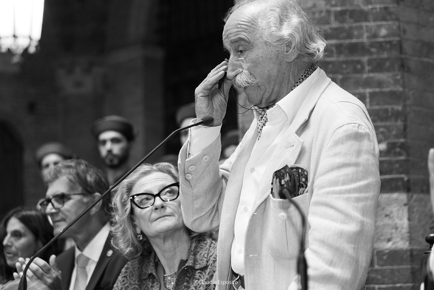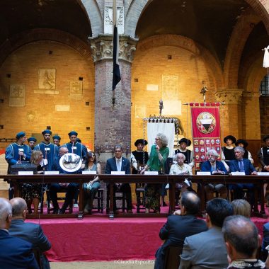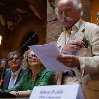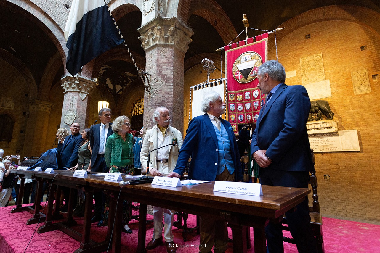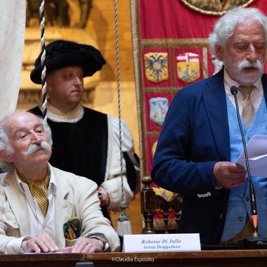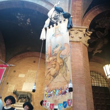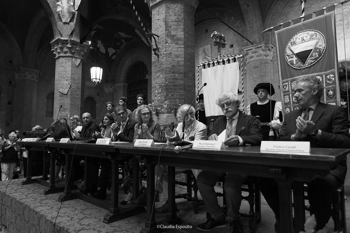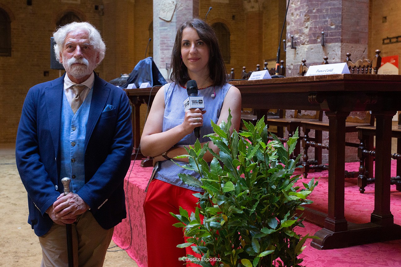 Riviviamo le emozioni della presentazione del drappellone realizzato dall’artista Roberto di Jullo per il Palio del 2 luglio, con le immagini scattate da Claudia Esposito per Siena Tv. Applausi per l’opera che è stata svelata ieri sera nel cortile del Podestà di Palazzo Pubblico.