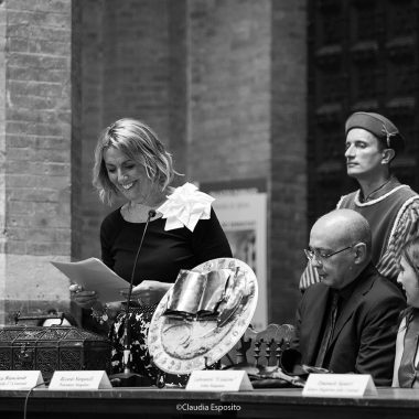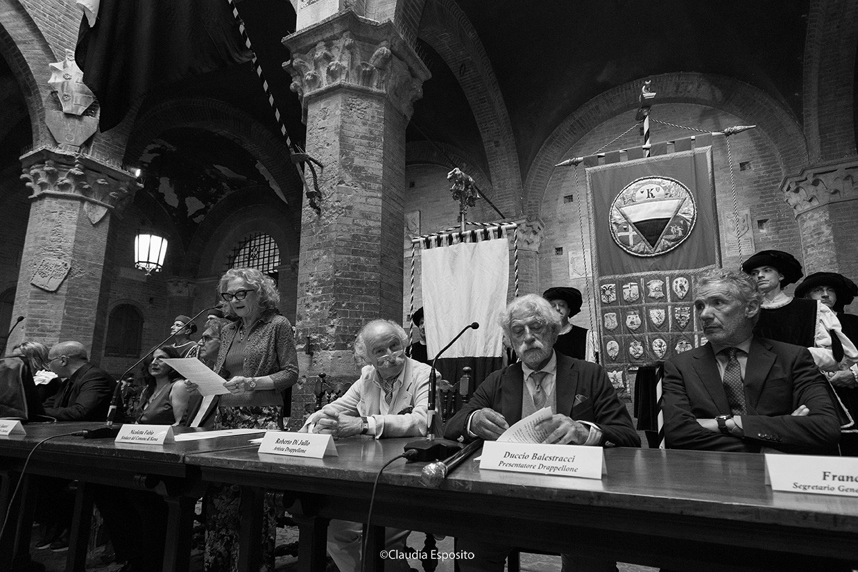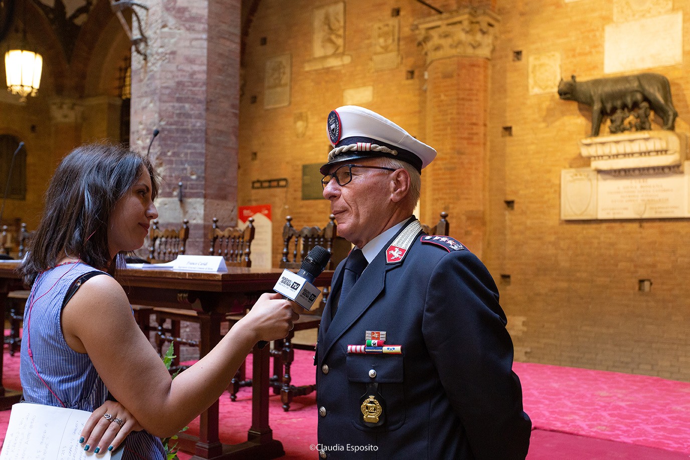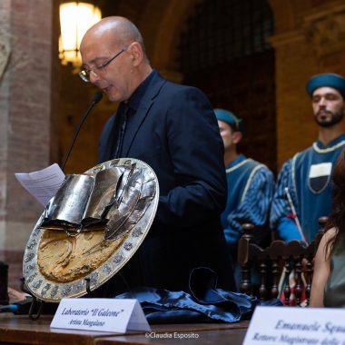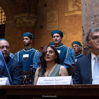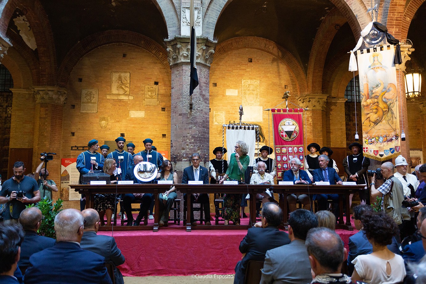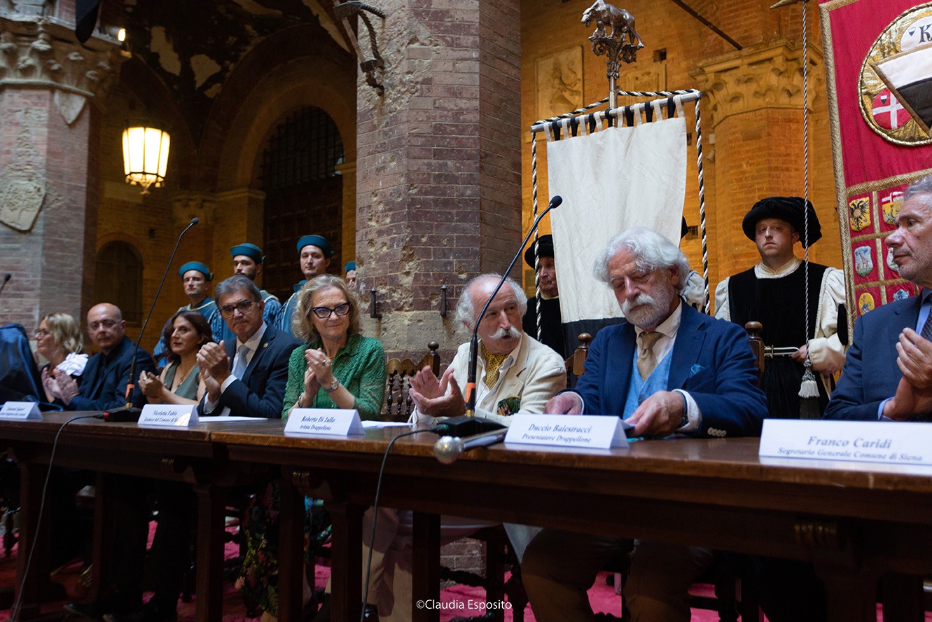 Riviviamo le emozioni della presentazione del drappellone realizzato dall’artista Roberto di Jullo per il Palio del 2 luglio, con le immagini scattate da Claudia Esposito per Siena Tv. Applausi per l’opera che è stata svelata ieri sera nel cortile del Podestà di Palazzo Pubblico.