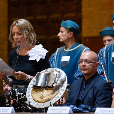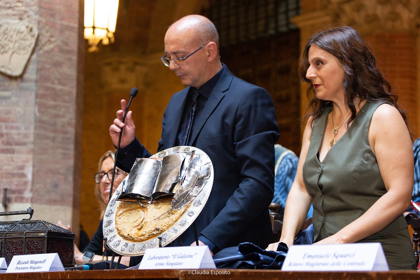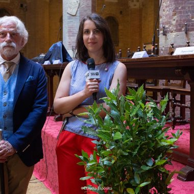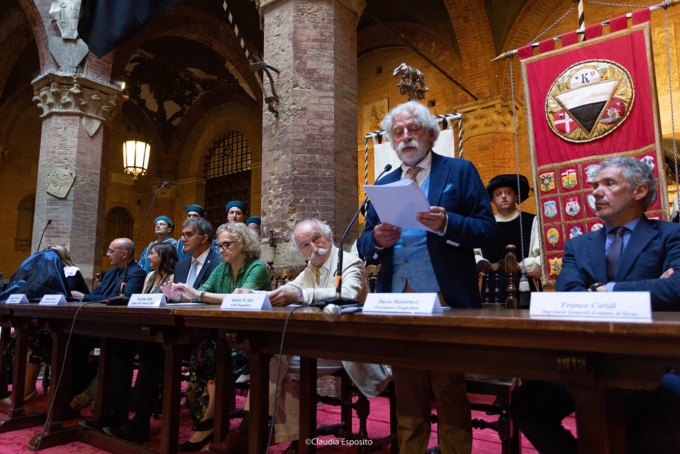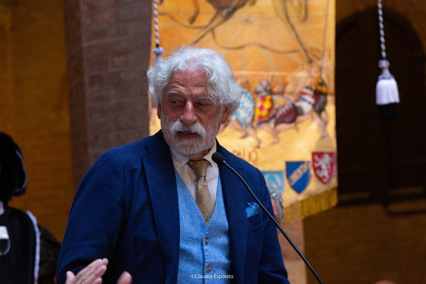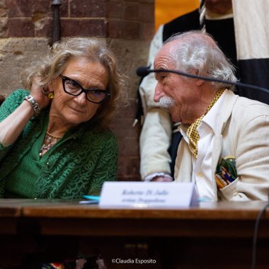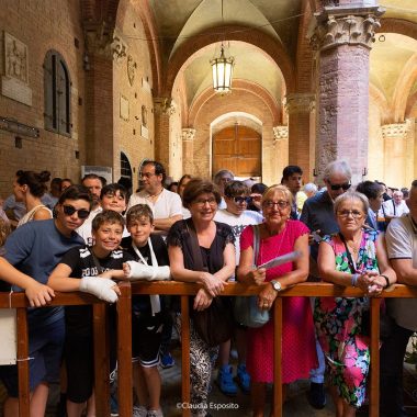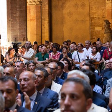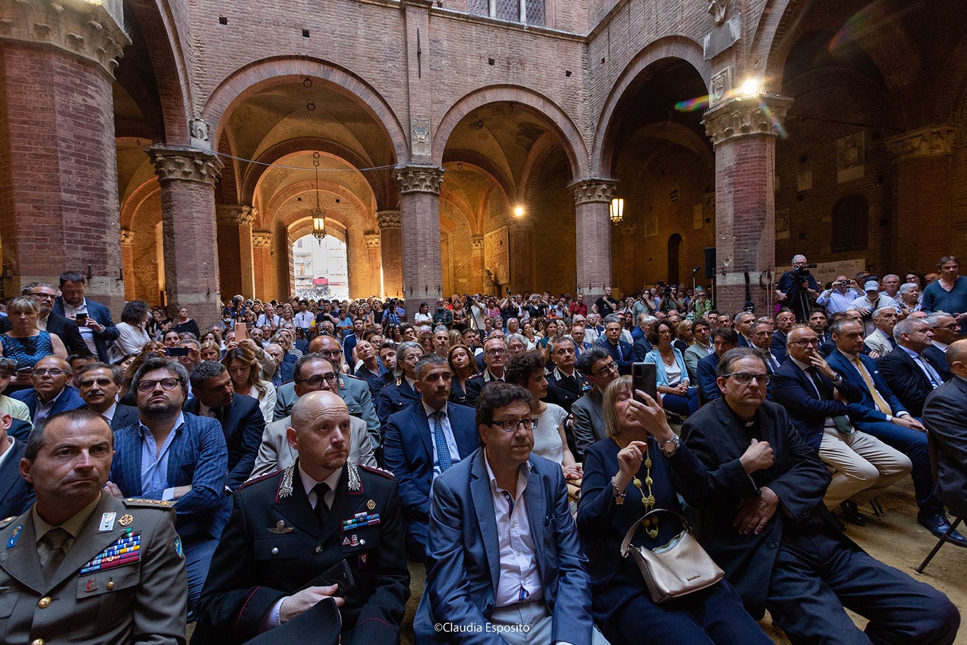 Riviviamo le emozioni della presentazione del drappellone realizzato dall’artista Roberto di Jullo per il Palio del 2 luglio, con le immagini scattate da Claudia Esposito per Siena Tv. Applausi per l’opera che è stata svelata ieri sera nel cortile del Podestà di Palazzo Pubblico.