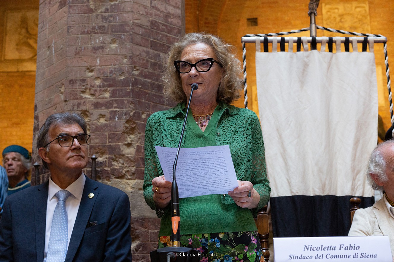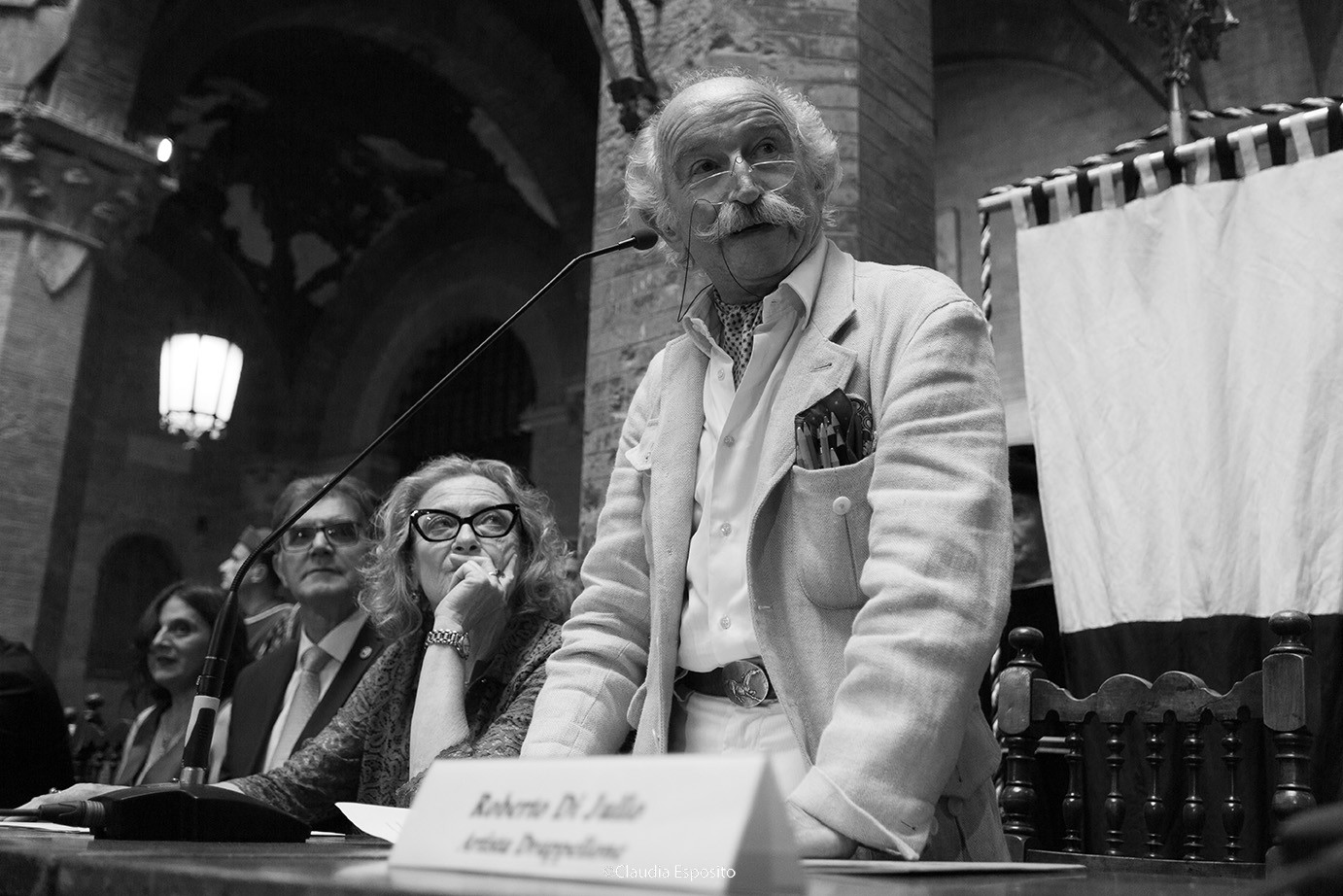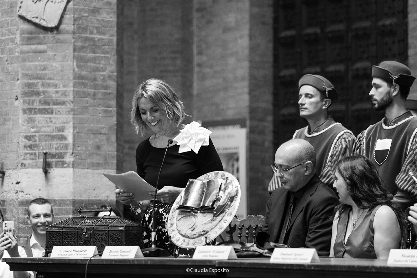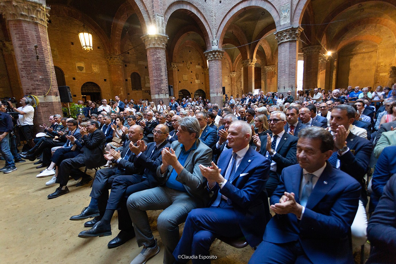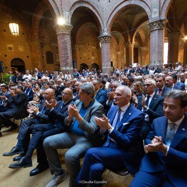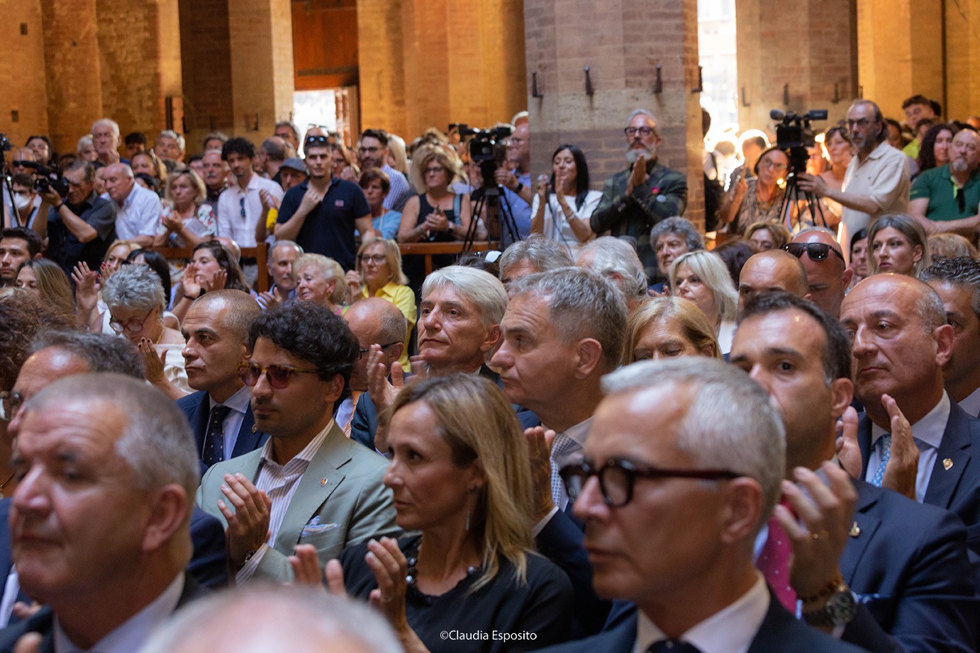 Riviviamo le emozioni della presentazione del drappellone realizzato dall’artista Roberto di Jullo per il Palio del 2 luglio, con le immagini scattate da Claudia Esposito per Siena Tv. Applausi per l’opera che è stata svelata ieri sera nel cortile del Podestà di Palazzo Pubblico.