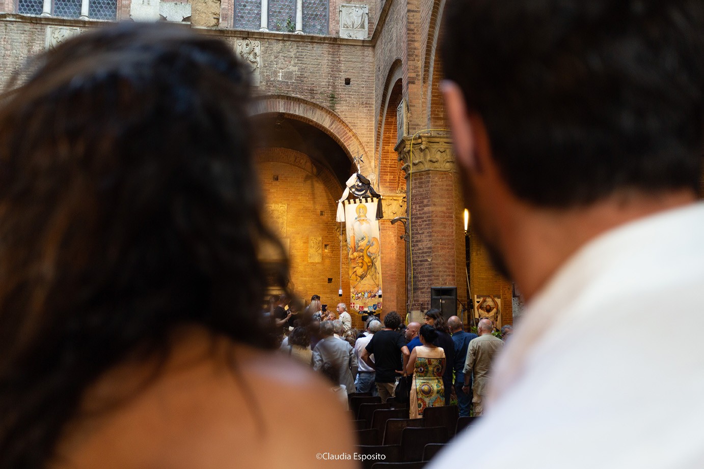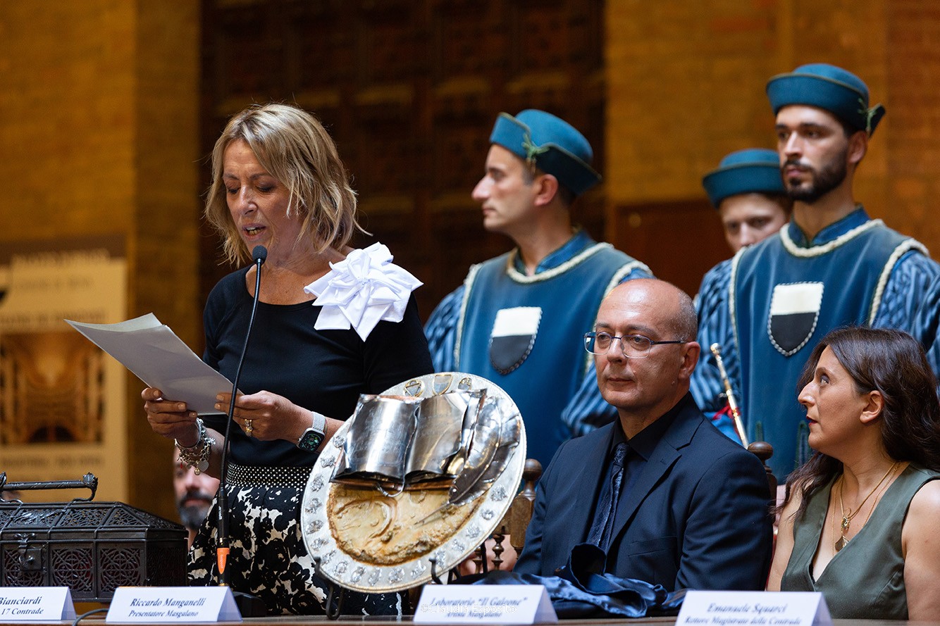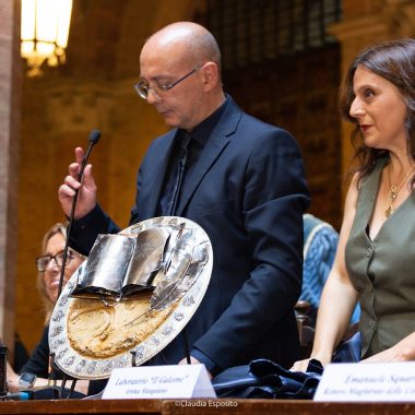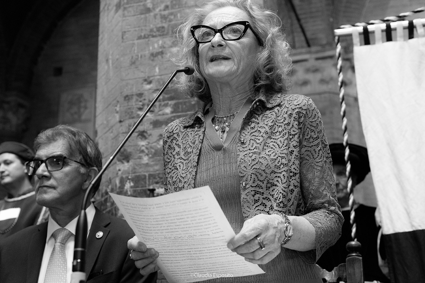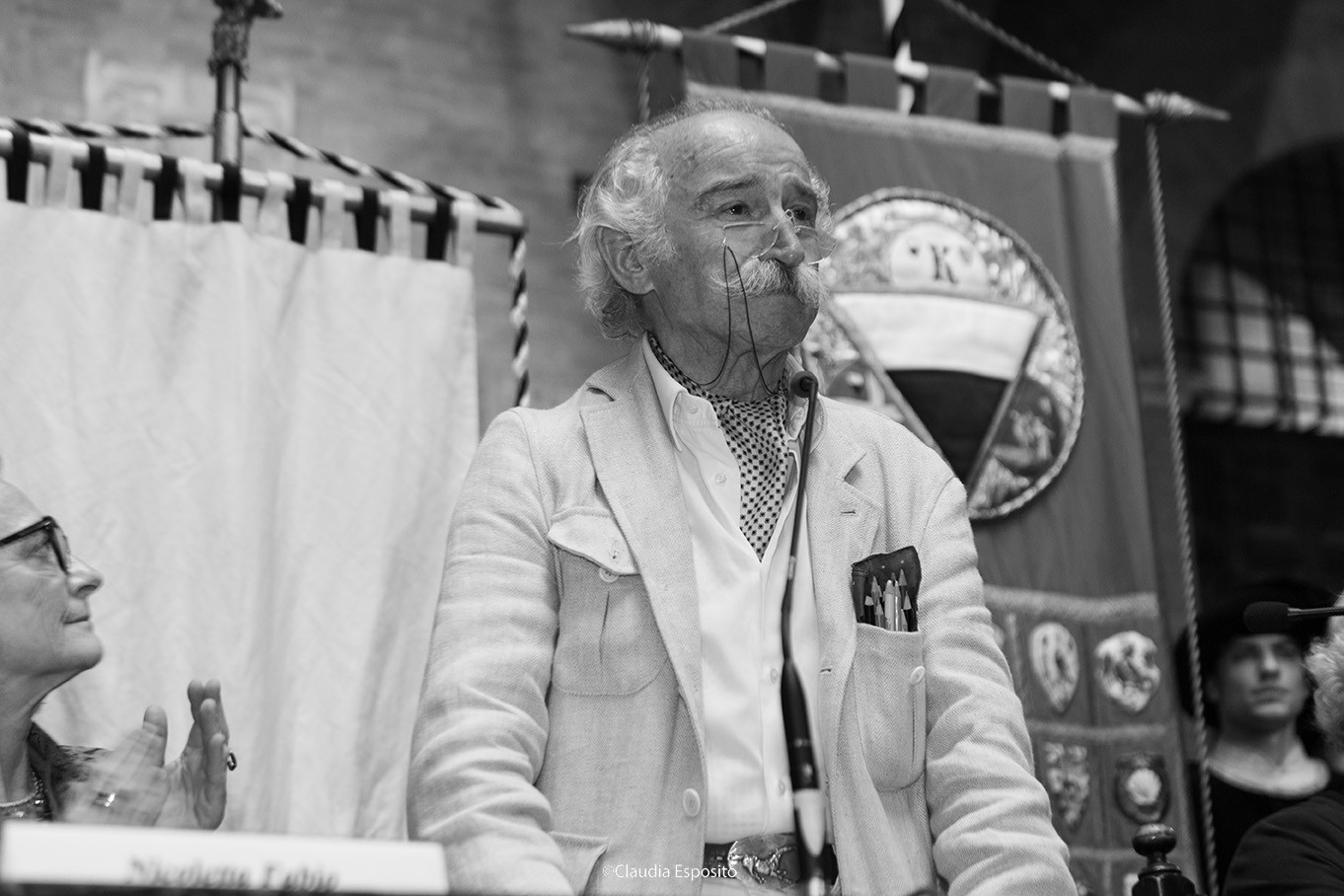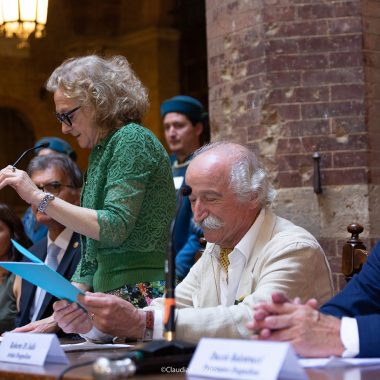 Riviviamo le emozioni della presentazione del drappellone realizzato dall’artista Roberto di Jullo per il Palio del 2 luglio, con le immagini scattate da Claudia Esposito per Siena Tv. Applausi per l’opera che è stata svelata ieri sera nel cortile del Podestà di Palazzo Pubblico.