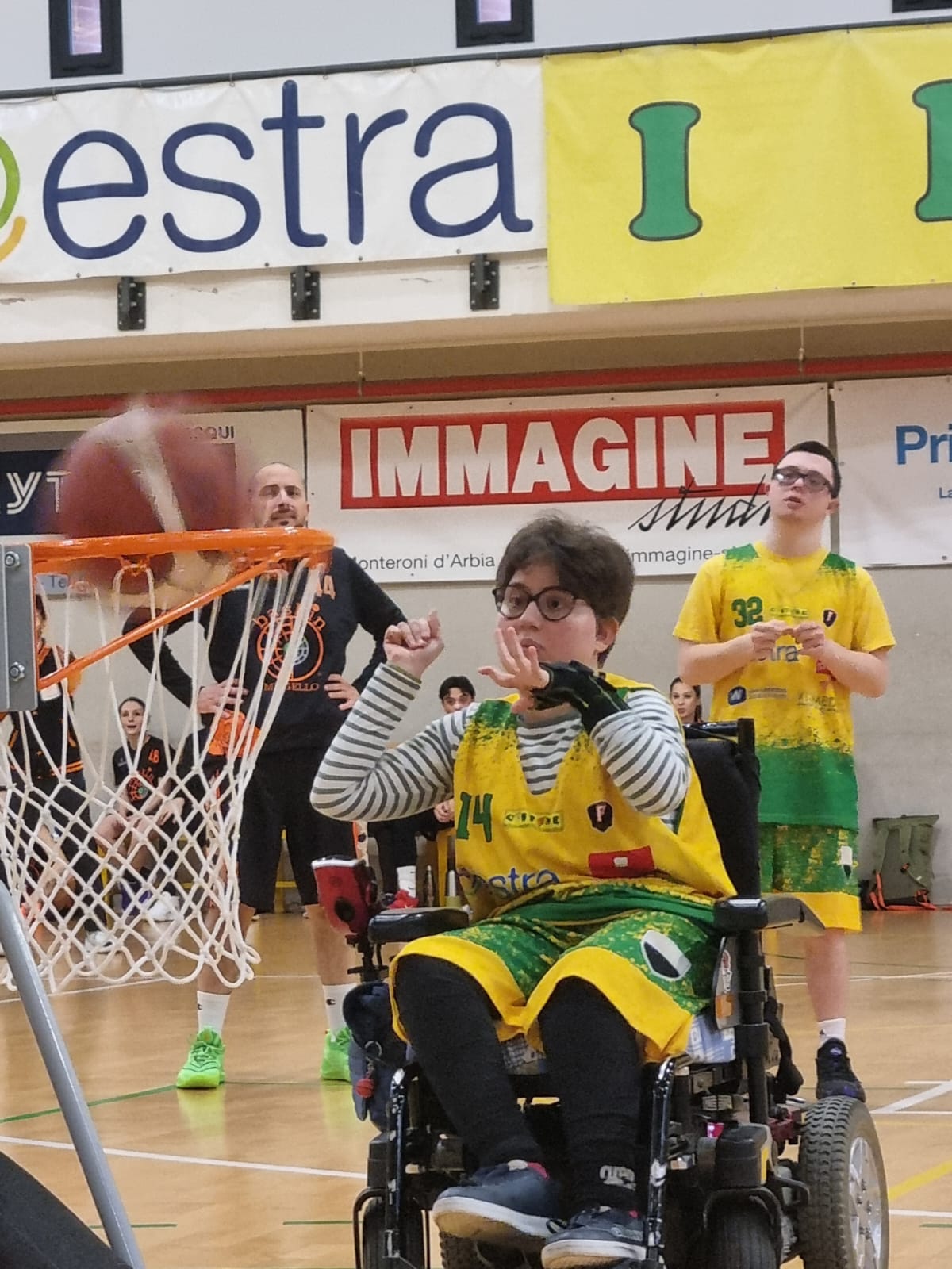 Inizia il terzo quarto e i gialloverdi di casa ritrovano fluidità e una difesa più attenta mentre Mazziotti, Dell’Orto e Abbate continuano a martellare il canestro laterale (42 punti complessivi alla fine per loro) e Francesco Rustici, Riccardo Ricci e Margherita Pepi portano punti dal canestro principale.