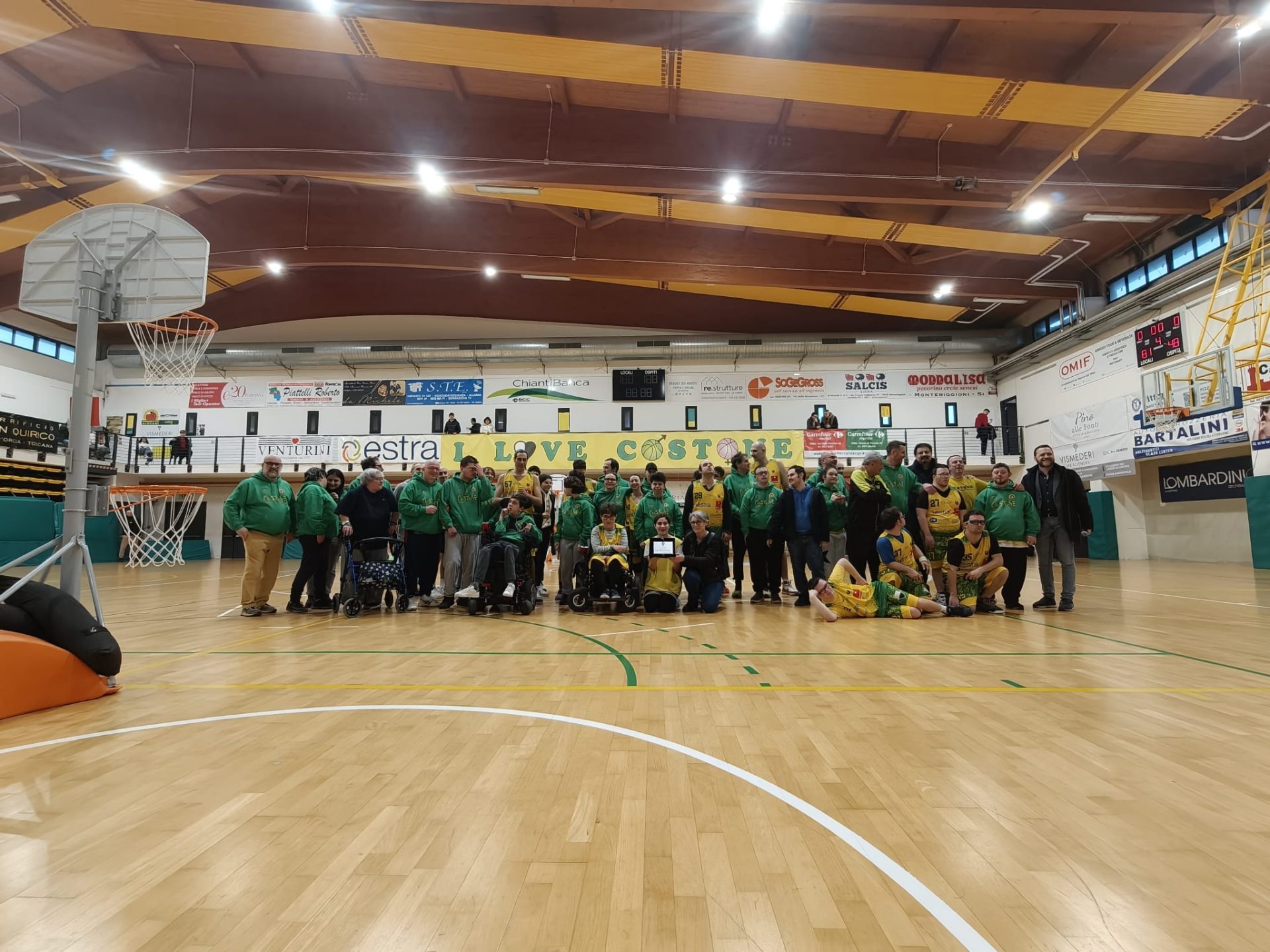 Il pomeriggio al Pala Orlandi è stato arricchito anche da un momento particolarmente significativo fuori dal campo. Il Costone Baskin ha voluto ringraziare Silvia, mamma di Margherita Pepi, per aver citato e ringraziato il movimento gialloverde all’interno della propria tesi di laurea, dedicata ai valori e all’esperienza del baskin. A nome della società, il presidente Matteo Borsi e l’amministratore Roberto Innocenti hanno consegnato a Silvia una targa di riconoscimento, a testimonianza del forte legame tra il Costone Baskin e le famiglie che ne condividono quotidianamente il percorso di inclusione e crescita.