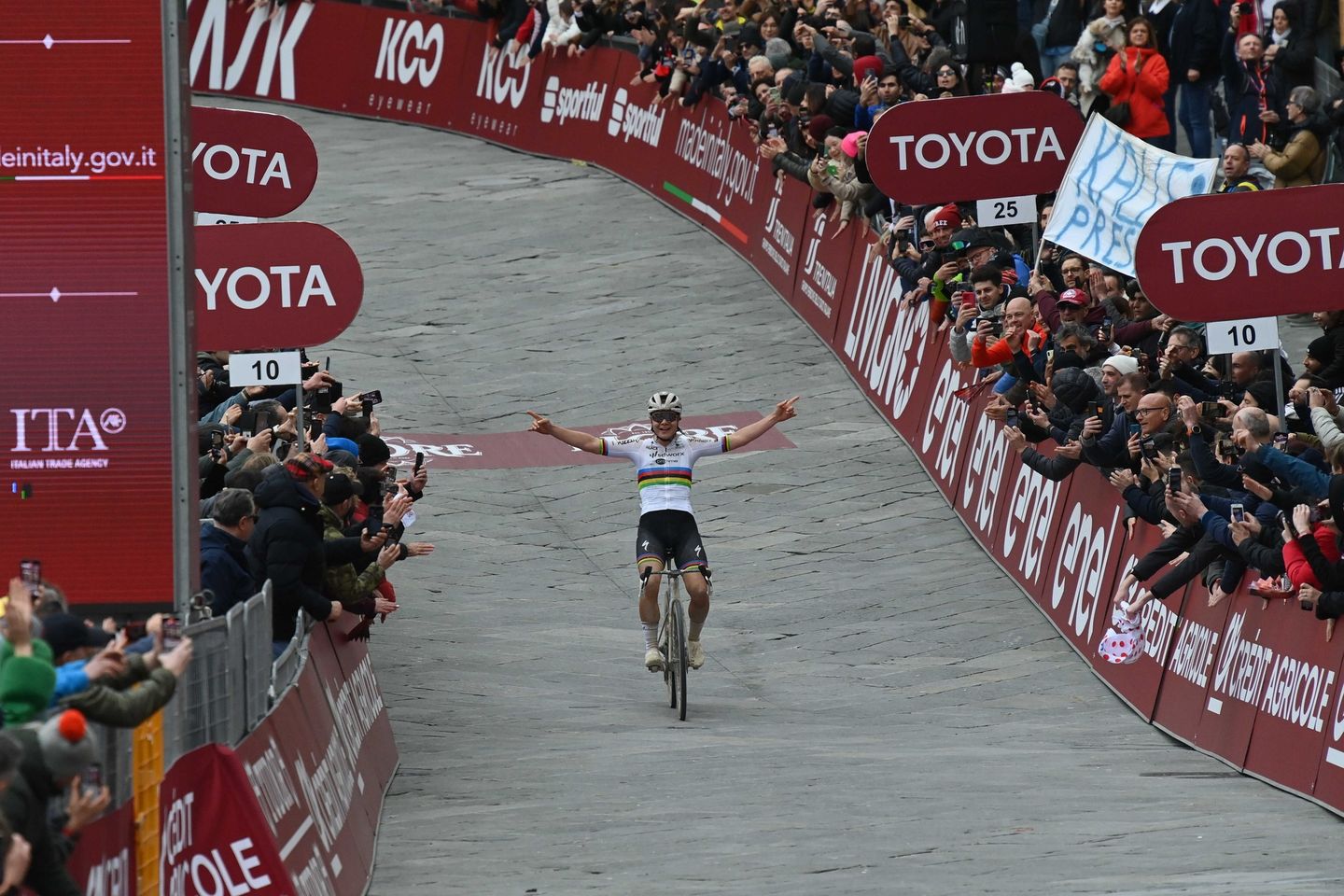 Lotte Kopecky (Team SD Worx) vince la decima edizione della Strade Bianche Women Elite Crédit Agricole, da Siena a Siena (Piazza del Campo) di 137 km. Sul traguardo finale nell’iconica piazza, la Campionessa del Mondo ha preceduto Elisa Longo Borghini (Lidl – Trek) e Demi Vollering (Team SD Worx).