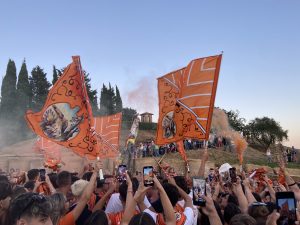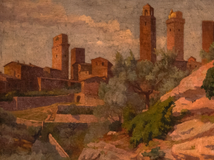 Si celebra così un pittore che ha tratto ispirazione dalla Toscana e in particolare dalle aree senesi e fiorentine. La sua opera è anche una testimonianza di una Firenze “com’era” (alla quale il Museo comunale dedicò un’intera saletta), con scorci di vie e di piazze andate distrutte o trasformate. Del resto in questa città aveva stabilito la sua dimora e fissato il suo studio in via della Vigna Nuova. Non mancano altre affascinanti ispirazioni: la cittadina di San Gimignano con i vicoli, le torri e gli uliveti. Allo stesso modo, ai piedi del cono vulcanico dell’Amiata ha ritratto la vallata dell’Orcia, dalle sorgenti fino al crinale oltre il quale il letto del fiume si getta nell’Ombrone. A Campiglia d’Orcia, ecco fissati gli scorci di una campagna che al calar del sole vedeva gli animali tornare alle stalle e agli ovili, oltre agli alberi o al grano accarezzato dal vento morbide forme dei “gretoni” valdorciani.
