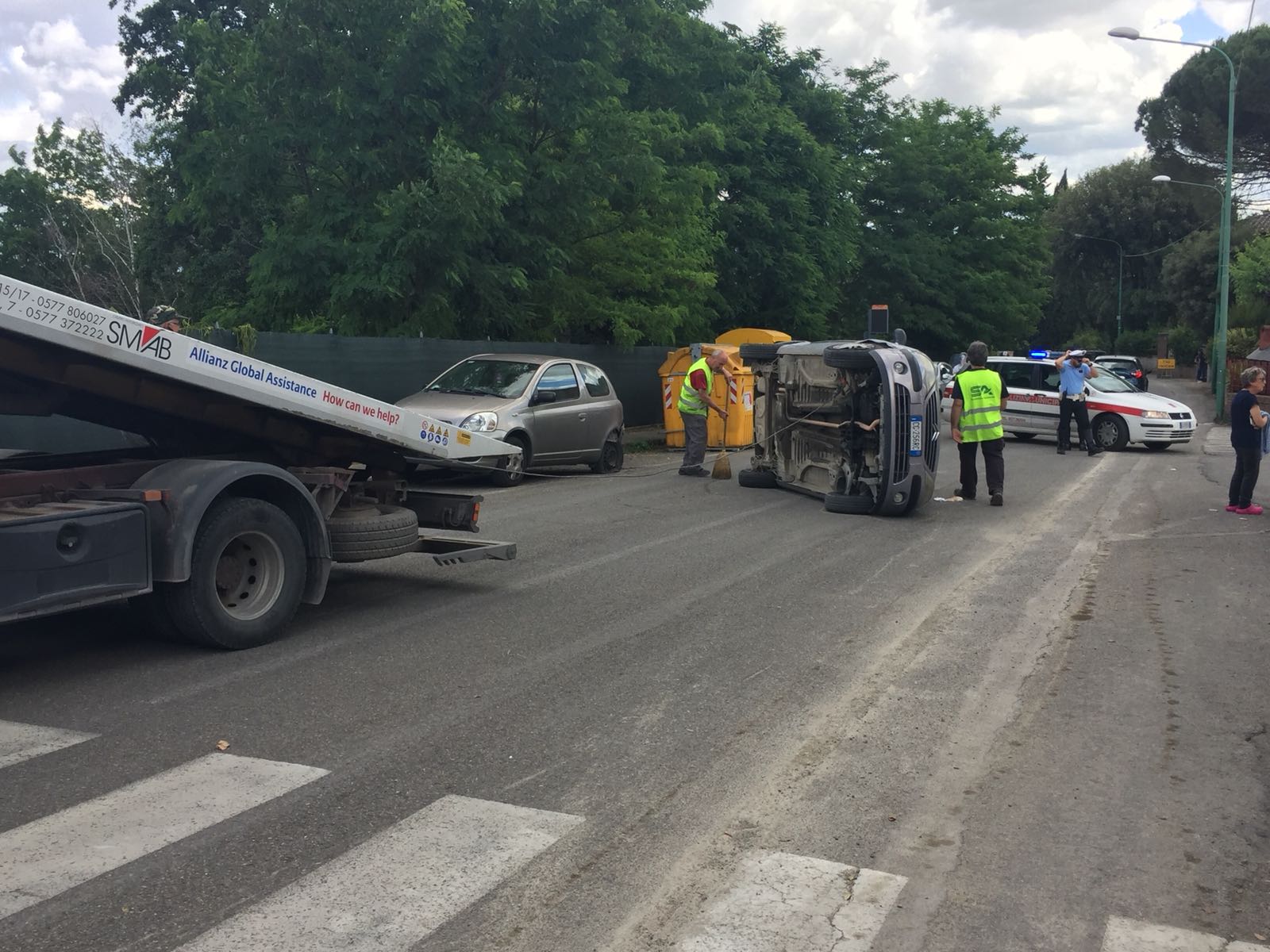 Grave incidente in strada dei Cappuccini nel primo pomeriggio. L’auto di una donna di 48 anni si è ribaltata con la conducente che è ha subito diverse ferite ed é stata portata alle Scotte.