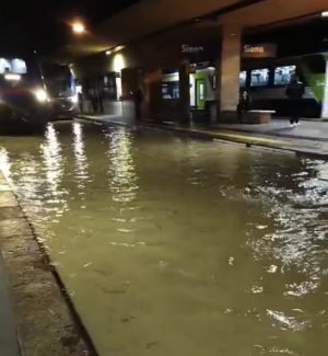 Si segnalano numerose strade e rotatorie allagate, l’acqua ha inondato anche i binari della ferrovia e alcune case sono al momento senza corrente. Si registrano anche degli smottamenti, uno in via Fiorentina. Si è allagata anche la piscina dell’Acquacalda, che domani resterà chiusa.