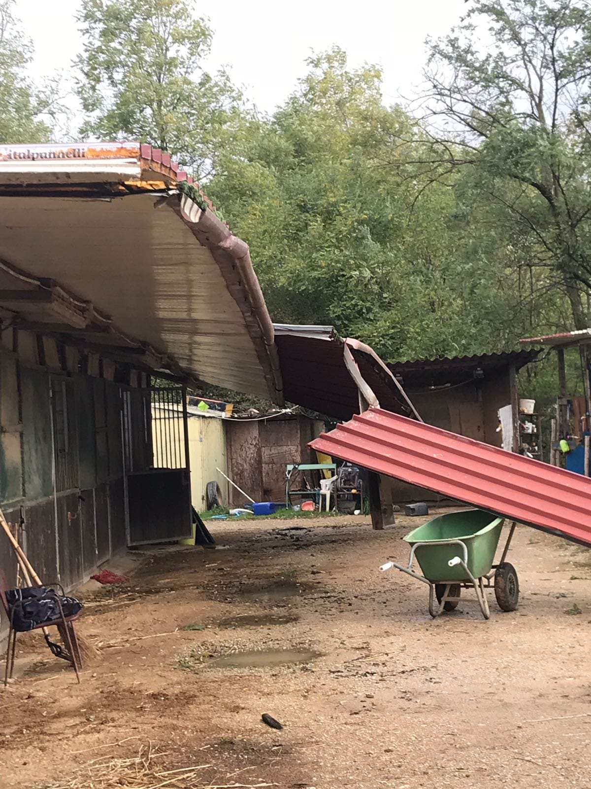 Anche la scuderia Donatini, in strada del Ferratore , è rimasta fortemente danneggiata dal nubifragio di questa notte.
