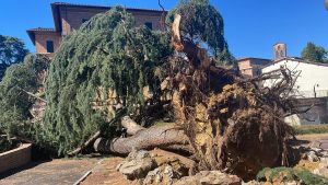 La violenta burrasca che si è abbattuta in città non ha poi risparmiato alberi simbolo dei luoghi periferici di Siena. Le raffiche di vento hanno infatti provocato il crollo del grandissimo albero secolare di fronte alla Chiesa dell’Alberino, a Ravacciano. Una pianta che era lì da secoli, a dimostrazione della sua grandezza, che sempre ha fatto compagnia a ragazzi e adulti che hanno vissuto questa zona tranquilla della città.