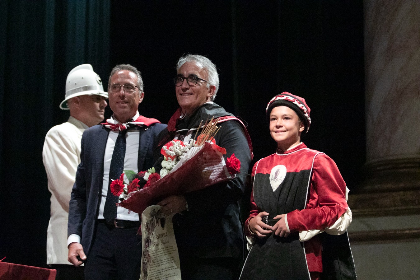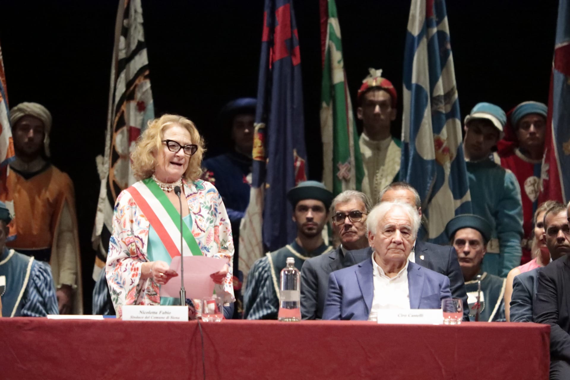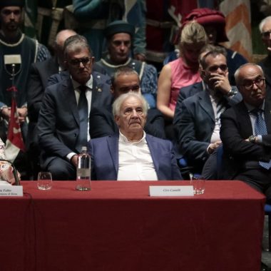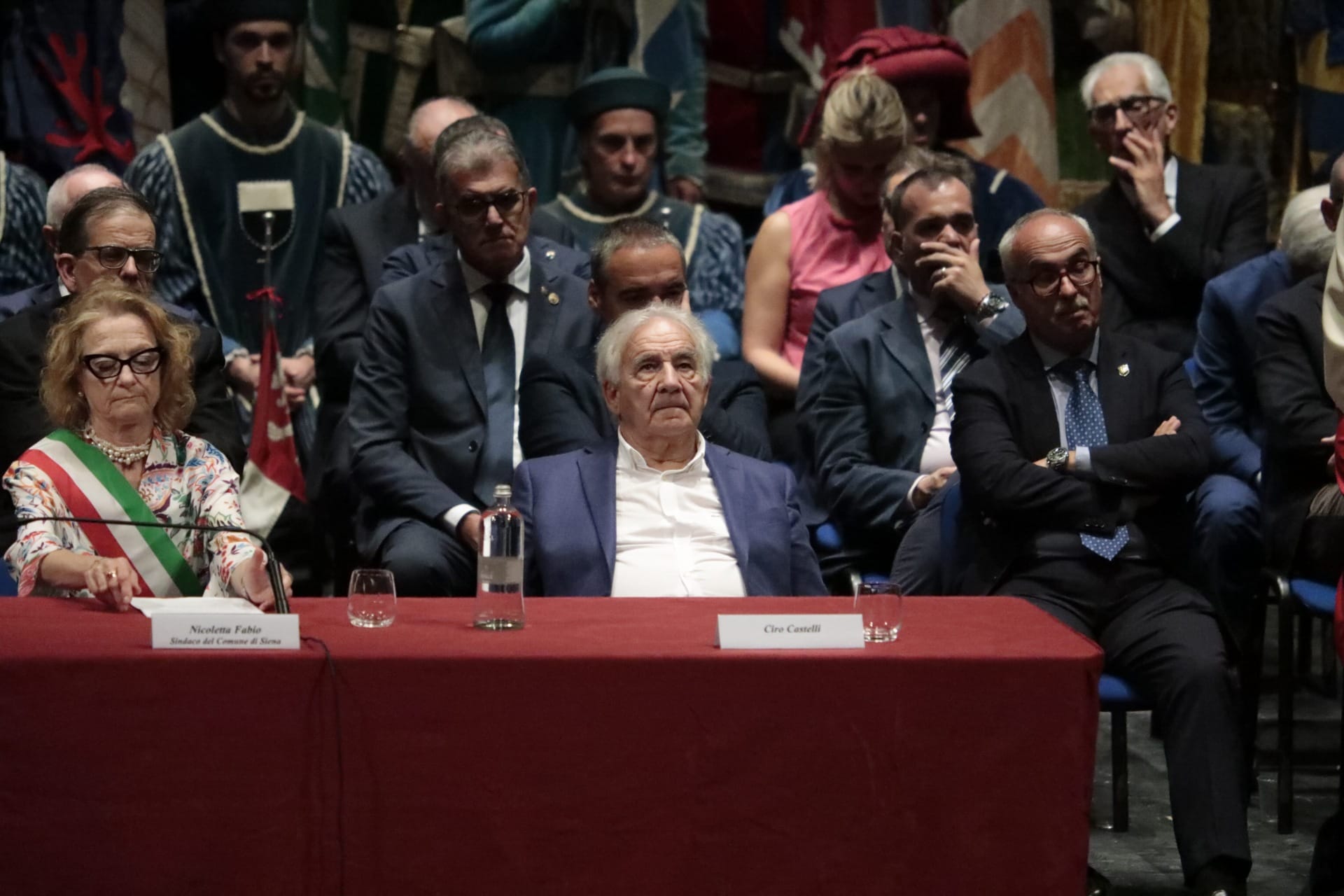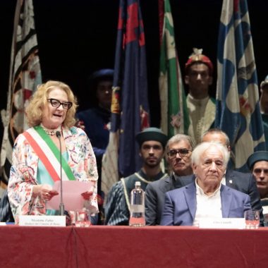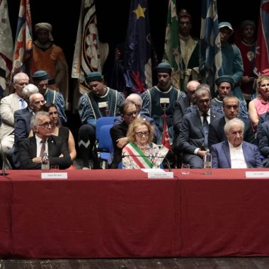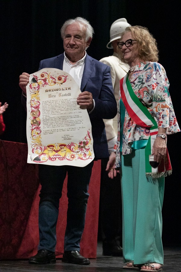 In un teatro dei Rinnovati gremitissimo di persone è stato consegnato oggi il Mangia d’Oro 2023 al professor Angelo Riccaboni e le medaglie di civica riconoscenza a Ciro Castelli e ai Ragazzi del ’53.