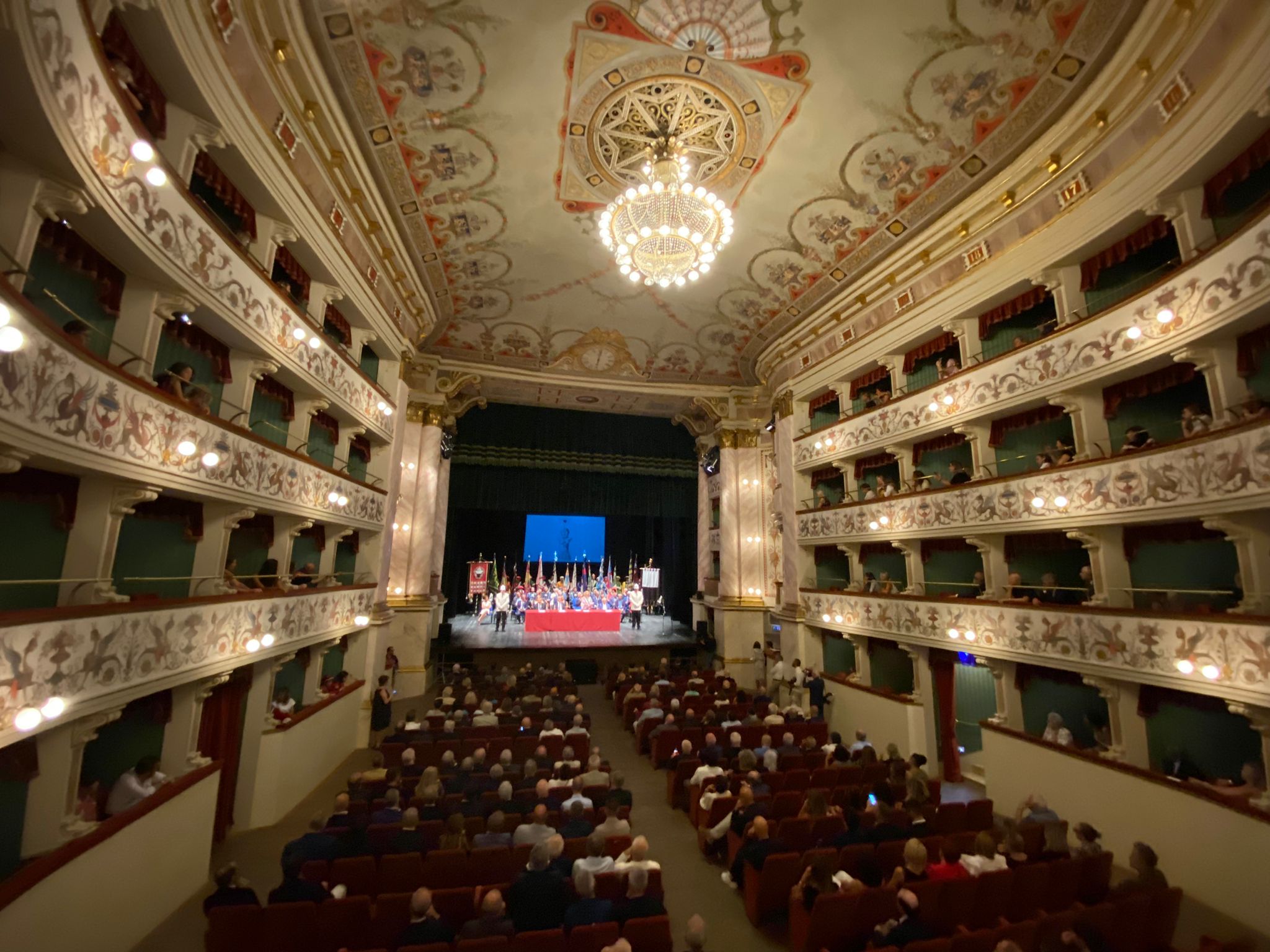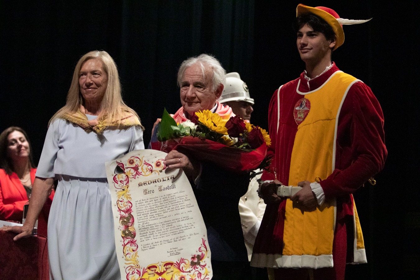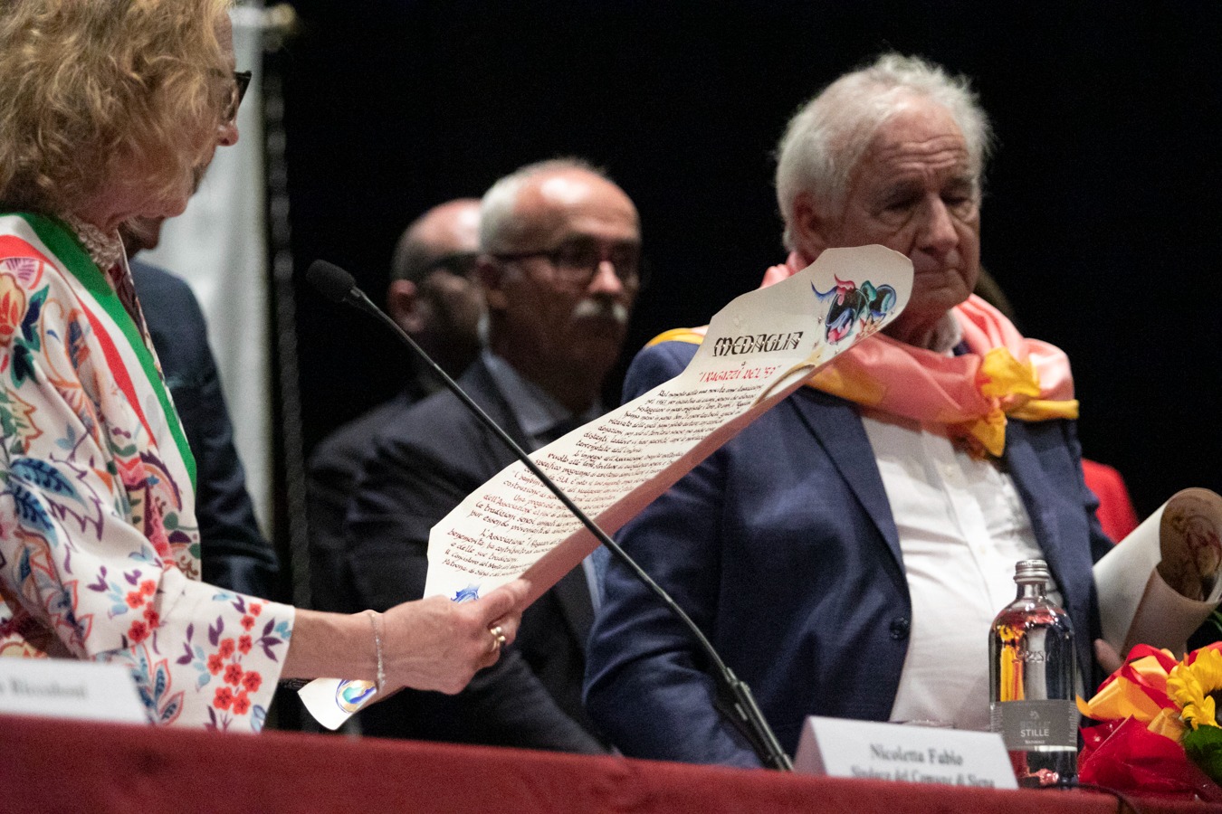 In un teatro dei Rinnovati gremitissimo di persone è stato consegnato oggi il Mangia d’Oro 2023 al professor Angelo Riccaboni e le medaglie di civica riconoscenza a Ciro Castelli e ai Ragazzi del ’53.