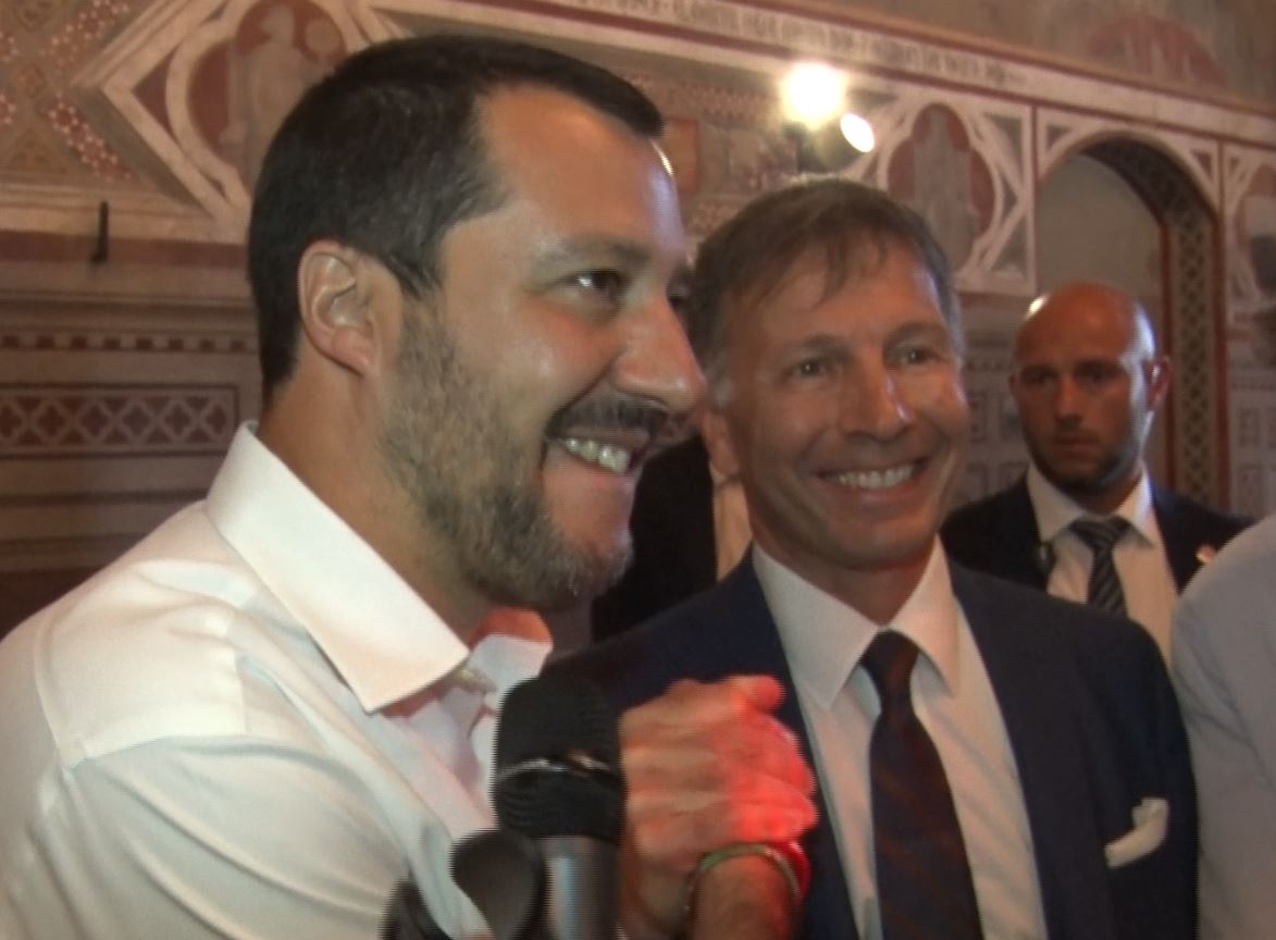 Ospite del Comune per il Palio del 2 luglio, il ministro dell’Interno Matteo Salvini ha incontrato la stampa a Palazzo Pubblico. “Il primo Palio della Lega? No, il Palio per fortuna sopravvive a tutto – ha detto ai microfoni – Ho privilegio di vederlo dal vivo con i miei consolidali . Il sindaco ha un’eredità importante, farà un bel lavoro con una bella squadra, vogliamo restituire la città ai senesi. In bocca al lupo al sindaco, c’è tanto da fare. Mps, obiettivo del governo era e rimane risarcire chi è stato derubato. Altri hanno messo le mani sulla città, sull’ospedale le banche, lavori chi meriti, a prescindere dai colori politici. Domani a Suvignano per la lotta alla mafia – ancora Salvini – che è primaria rispetto anche alle Ong. Il Governo? Abbiamo iniziato bene, chi ben comincia è a metà dell’opera. Il Financial Times dice che sono più minaccioso di Trump? Ho la faccia di uno minaccioso? Mi sono fatto anche la barba e messo la giacca. Se l’Europa acquista le idee della Lega si salva. Le quattro campionesse dell’atletica? (Maria Benedicta Chigbolu, Ayomide Folorunso, Raphaela Lukudo e Libania Grenot, ndr) Mi farebbe piacere incontrarle – ha concluso – ma voglio fare i complimenti a tutti i 150 medagliati, non vorrei che a sinistra si scegliessero solo alcuni, sennò sarebbe razzismo”.