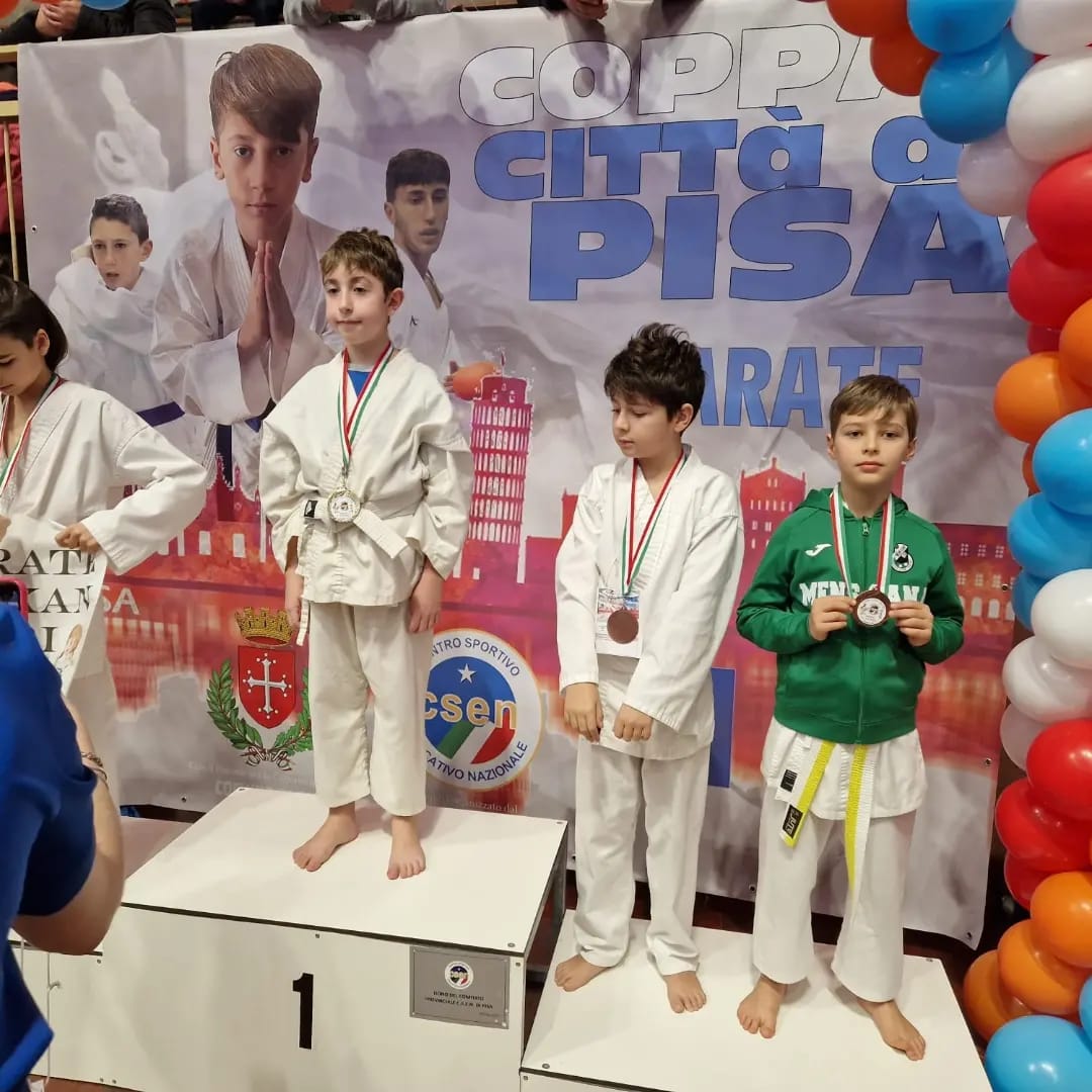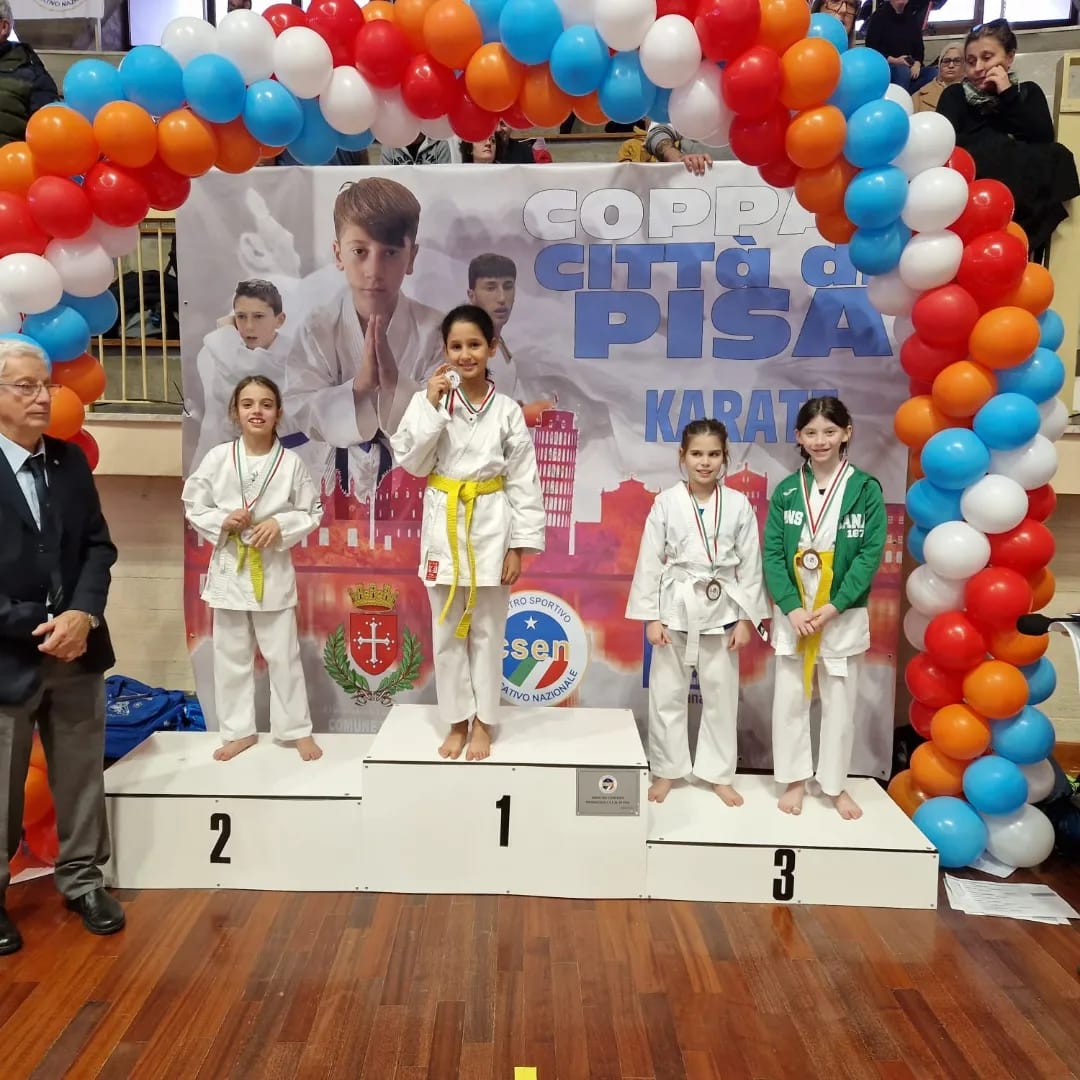 Il medagliere. Le prime medaglie arrivano nella specialità ‘Palloncino’ con l’oro della giovanissima Clara Matesic. Ottima prova di Matteo Tornesi e Leonardo Bandini che conquistano il terzo gradino del podio. I tre atleti si confermano campioni anche nella specialità ‘Kata’, dove Clara e Leonardo conquistano l’oro, mentre per Matteo Tornesi e Anna Lensini arriva la medaglia di bronzo. Non si fermano i successi per Clara Matesic che padroneggia anche nella specialità ‘Kumite’ strappando un’ottima medaglia di bronzo insieme alla compagna Elena Pianigiani. Per Dario Papini, Alessio Mallardi, Maximilian Nacci ed Elisabetta Ferraro, invece, arriva il primo gradino del podio, dopo aver disputato dei combattimenti strepitosi confrontandosi con i migliori atleti d’Italia in questa specialità. Ottima prestazione anche di Antonio Caiata che, al suo esordio in questa categoria, non si è lasciato intimidire dagli avversari conquistando il secondo gradino del podio. Argento anche per Azzurra Banfi che cede l’oro per un punto strappato dalla sua avversaria. Maya Milea e Margherita Butini sfiorano il podio dopo aver disputato una buona finale per il terzo posto. Tra i più piccoli, Vasilisa Lodoli e Gabriele Lopez hanno sfiorato il podio nelle proprie categorie, una sconfitta che non ha oscurato le grandi qualità dei giovanissimi atleti.