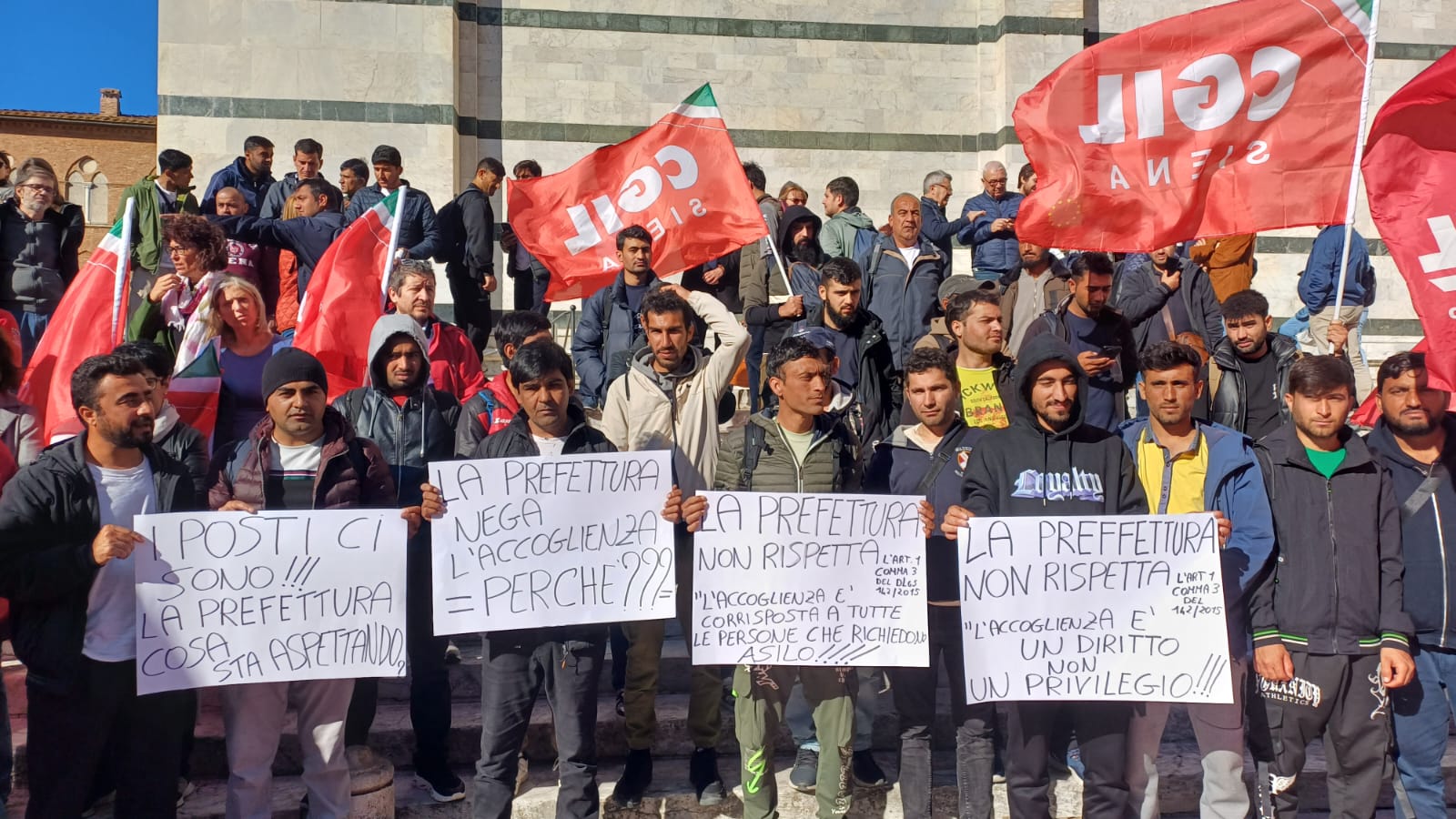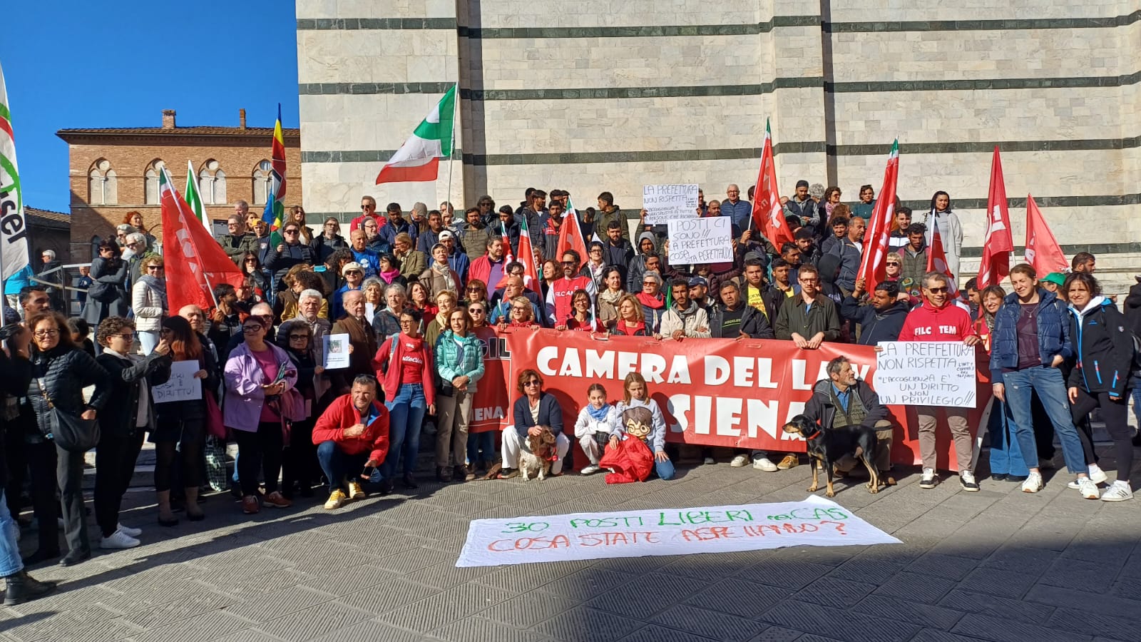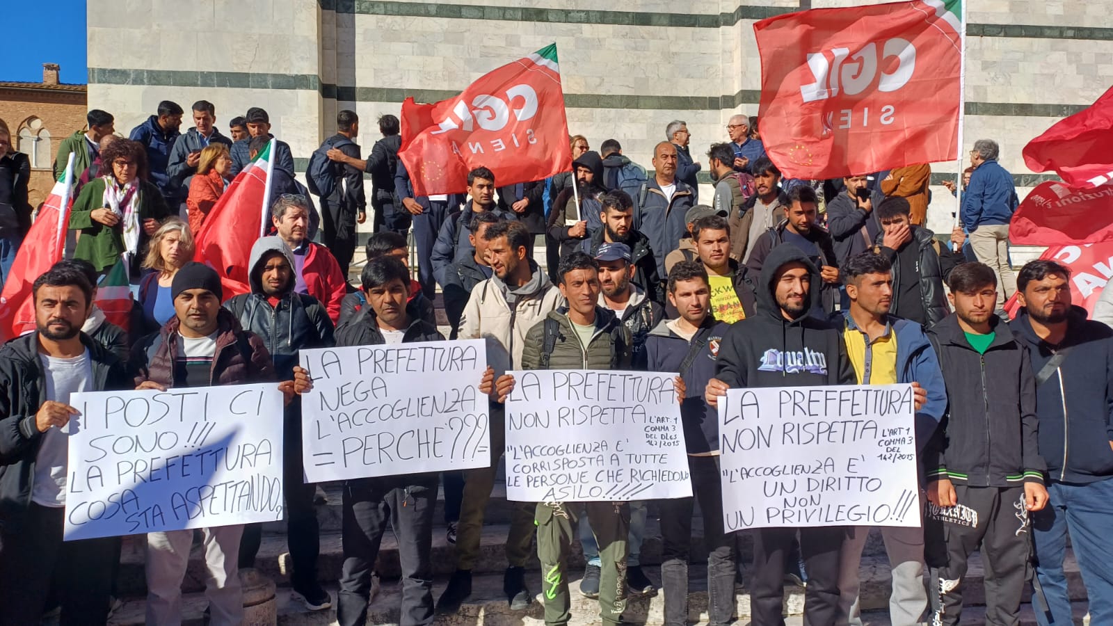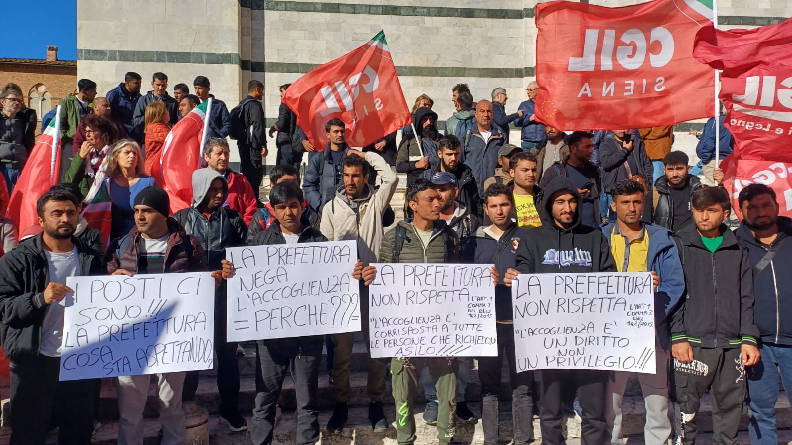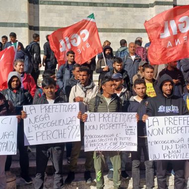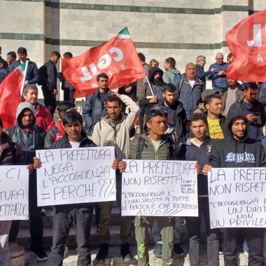 “Siamo qui accanto a chi i diritti non ce li ha. Siamo qui perché se non sono tutelati i loro diritti non sono tutelati neanche i nostri diritti. Manifestare è un nostro diritto. A questa città non va più bene che ci siano 50 persone che dormono al freddo e al gelo, che siano costretti a elemosinare il cibo”. Queste le voci di fronte alla Prefettura dopo che i pakistani sono stati sgomberati dal parcheggio Il Duomo. La rete Si.Solidal ha organizzato un presidio che ha visto la partecipazione di ben 250 persone. Persone di varie reti e associazioni, ma anche il Pd di Siena e la Cgil di Siena.
