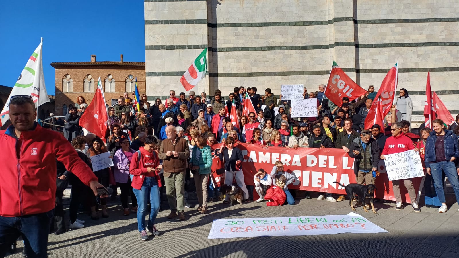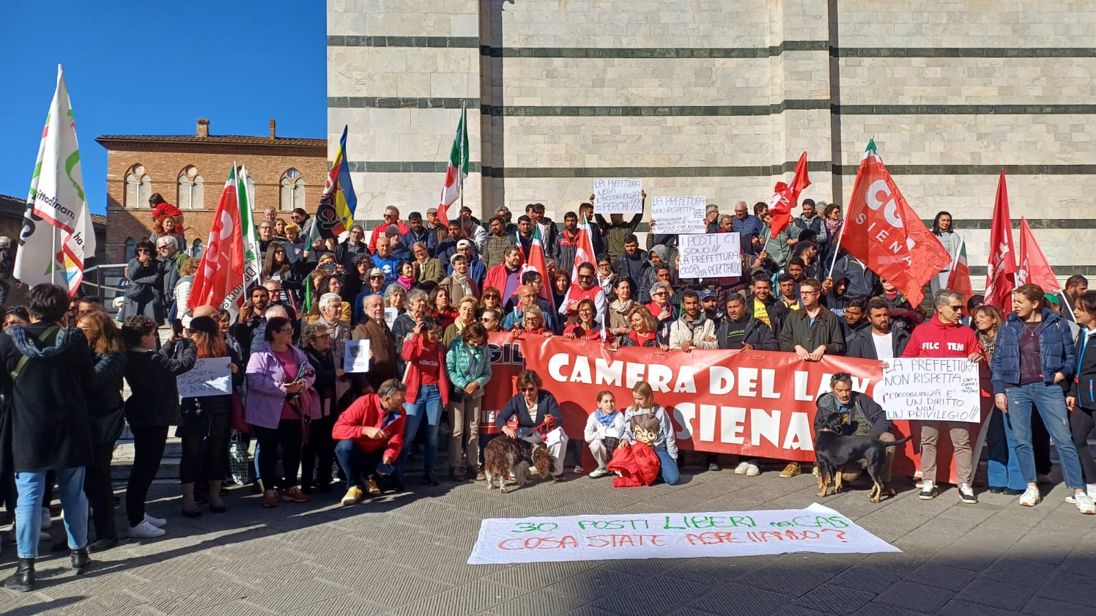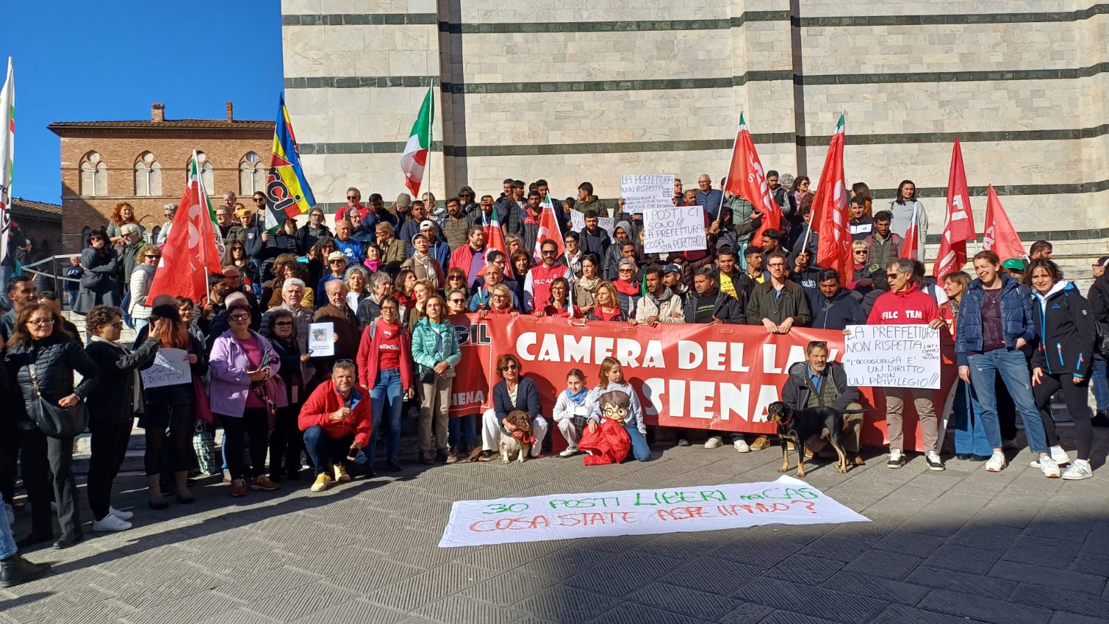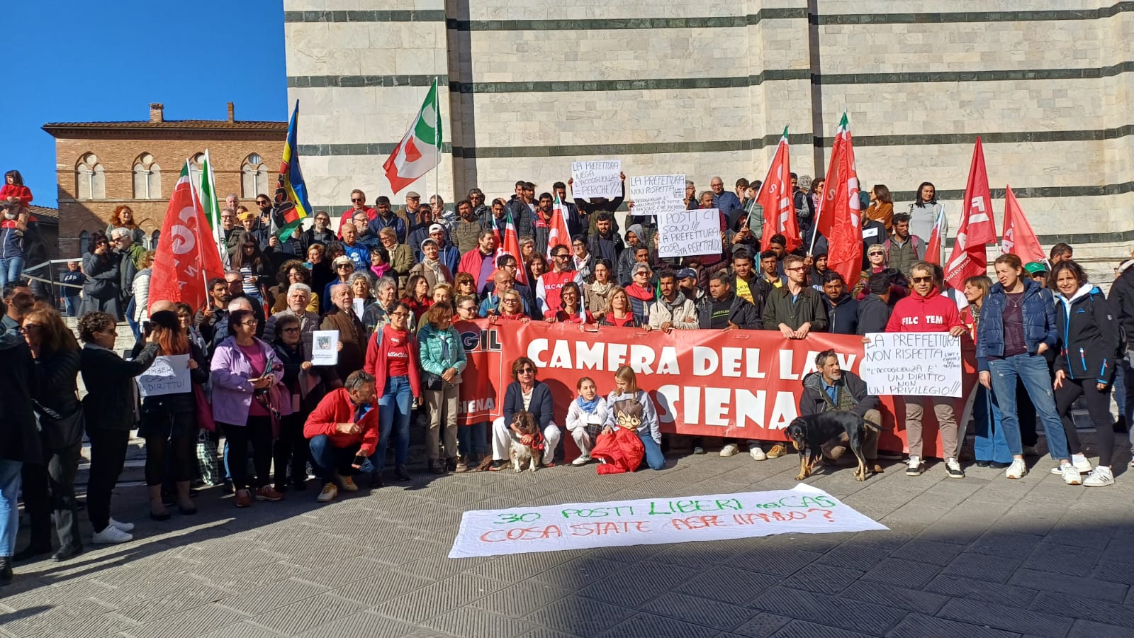 “Siamo qui accanto a chi i diritti non ce li ha. Siamo qui perché se non sono tutelati i loro diritti non sono tutelati neanche i nostri diritti. Manifestare è un nostro diritto. A questa città non va più bene che ci siano 50 persone che dormono al freddo e al gelo, che siano costretti a elemosinare il cibo”. Queste le voci di fronte alla Prefettura dopo che i pakistani sono stati sgomberati dal parcheggio Il Duomo. La rete Si.Solidal ha organizzato un presidio che ha visto la partecipazione di ben 250 persone. Persone di varie reti e associazioni, ma anche il Pd di Siena e la Cgil di Siena.
