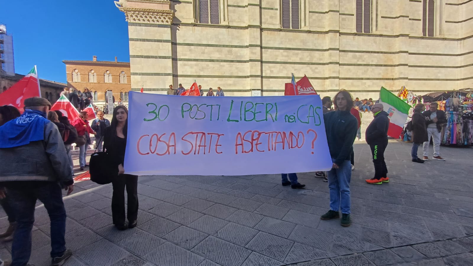 Numeroso anche il numero di ragazzi pakistani che, armati di striscioni, hanno voluto metterci la faccia. Un presidio che si è aperto sulle note di Bella Ciao e che si è chiuso con alcuni interventi da parte di coloro che ogni giorno fanno l’accoglienza “prima dell’accoglienza”. “Siena è questa, non quella che si volta dall’altra parte nel vedere dei ragazzi lasciati al freddo e al gelo – ribadisce Cassandra Rofi dell’associazione Verso Lab, che insieme a Corte dei Miracoli, la rete Civica SiSolidal, Refugees Welcome Italia, Caritas sta gestendo la questione Pakistani in maniera sinergica, facendo rete– . Chiediamo che vengano rispettati i principi del diritto e quello che riguarda la normativa sull’asilo, ovvero che nel momento in cui una persona formalizza la domanda d’asilo ha l’accesso ha un centro di accoglienza. Sappiamo che su Siena e provincia ci sono i posti liberi nei Cas. Le misure d’accoglienza sono rivolte a tutti coloro che fanno domanda d’asilo”.