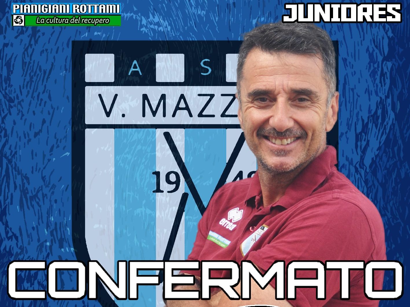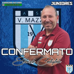 Per la dodicesima stagione nelle ultime tredici mister Marco Bari vestirà ancora il biancoceleste, guidando la formazione Juniores del Valentino Mazzola. Marco è ormai una bandiera, una colonna portante del nostro settore giovanile, una garanzia per la società e per tutti i ragazzi, legatissimo alla nostra piazza e pronto per una nuova, entusiasmante, stagione. Al suo fianco siederà un altro elemento di assoluto valore, mister Edoardo Costagliola, componendo quella coppia capace di raggiungere straordinari traguardi e, nell’ultima annata, di portare alla salvezza sia la quadra Juniores che quella degli Allievi Regionali.