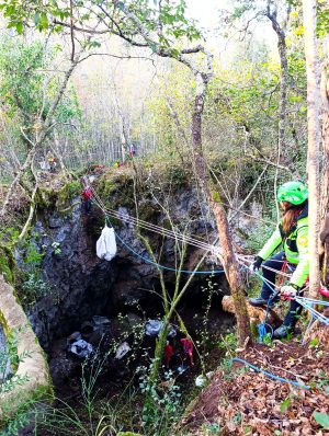 I rifiuti sono stati portati in superficie dentro grandi sacchi appesi alle funi e sono stati differenziati. Poi verranno caricati su camion del Comune e smaltiti. La dolina nel bosco, ripulita dalle brutture dell’uomo, ritornerà quindi ad essere un sorprendente luogo di bellezza naturale da ammirare, con la sua ritrovata aura di affascinante mistero.