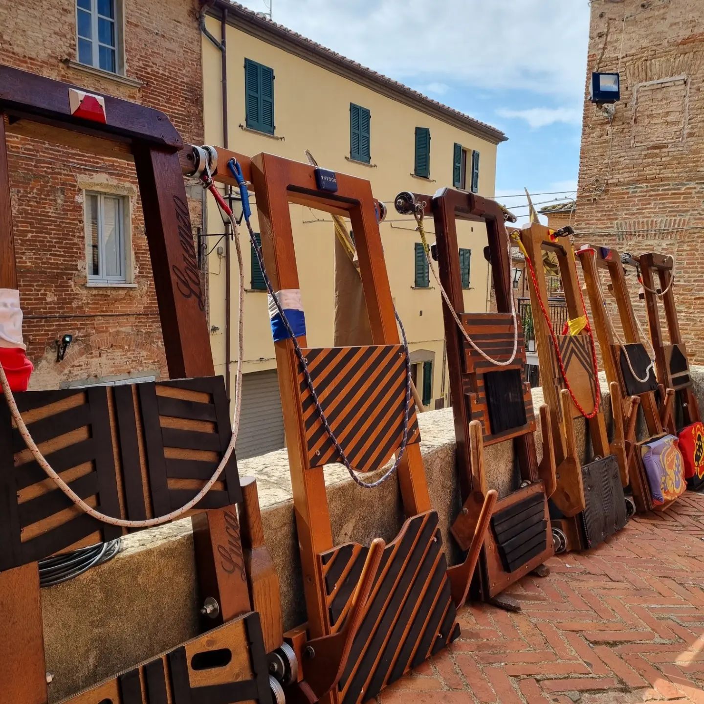 Si tratta, come noto, di una corsa mozzafiato con sei carretti costruiti con assi di legno e le ruote fatte con cuscinetti a sfera, guidati da due piloti per contrada che dovranno condurli lungo il “discesone” che dal centro del paese porta fino al Canale della Chiana. La gara vera e propria è preceduta da due giorni di eventi, ovvero la “Sagra del Ciambello”, una delle tipicità più legate alla tradizione rurale di questi luoghi, che prevede taverne aperte con piatti tipici e degustazioni in collaborazione con il presidio di SlowFood Montepulciano-Chiusi.