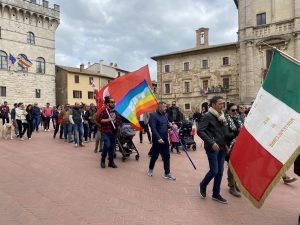 Una vera festa di popolo quella che si è tenuta a Montepulciano per le celebrazioni del 25 Aprile organizzate dall’Amministrazione comunale, in collaborazione con l’ANPI locale. Il corteo è partito da piazza Grande sulle note di Bella Ciao suonate dalla Banda Poliziana, ha attraversato le vie del centro storico sostando prima a Borgo Buio, dove è stata deposta una corona d’allora e suonato l’inno nazionale per ricordare l’impiccagione del giovane partigiano Giuseppe Marino, per poi terminare al Giardino di Poggiofanti. Qui il sindaco Michele Angiolini e la Presidente di ANPI Montepulciano Irene Bettollini, hanno tenuto due interventi accomunati dalla volontà di ribadire l’importanza del 25 aprile e di respingere ogni tentativo di revisionismo storico.