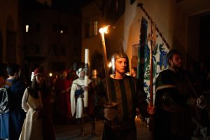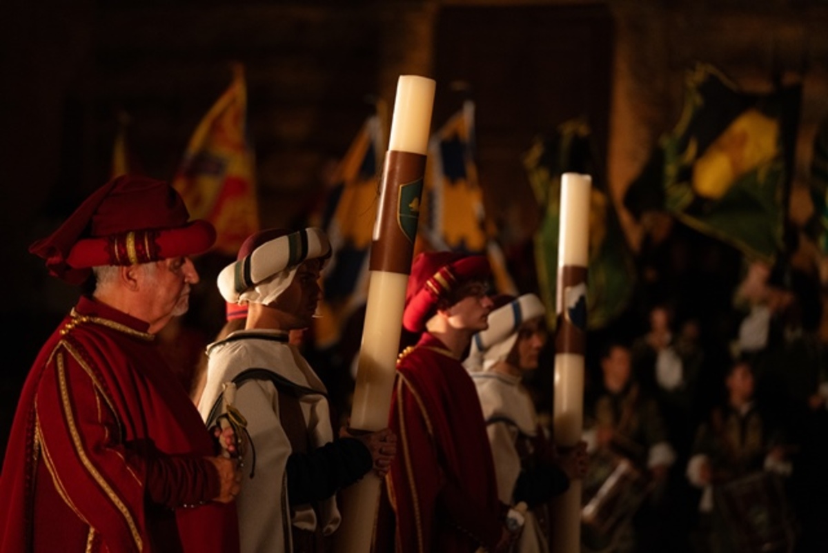 Ma in attesa della grande corsa, stasera, giovedì 22 Agosto l’appuntamento è con la magica serata dei Ceri e suggestivo Corteo illuminato solo dalla fiaccole e poi l’offerta dei ceri a San Giovanni Decollato, la giornata più solenne di tutta la manifestazione. L’imponente Corteo Storico, composto dalle otto contrade partirà alle ore 21:00 dalla Colonna del Marzocco per arrivare in Piazza Grande, intorno alle ore 22:00, in religioso silenzio. In Piazza Grande poi si svolgerà la cerimonia dell’offerta dei Ceri in onore del patrono San Giovanni Decollato nella Chiesa SS Nome del Gesù. A seguire la scena sarà tutta del Gruppo Sbandieratori e Tamburini con la loro esibizione e dopo lo spettacolo autoprodotto dal Magistrato delle Contrade a cura di Movimento creative Label e Davide Vannuccini. Proprio per la particolarità e l’aspetto caratteristico dell’appuntamento, i biglietti per lo spettacolo in Piazza Grande sono terminati nel giro di pochi giorni, e dunque il Magistrato delle Contrade consiglia di assistere al corteo lungo le vie del centro storico, per far in modo che tutto si svolga nel massimo rigore e sicurezza. Lo spettacolo sarà possibile seguirlo anche in diretta Tv sui canali 93 di Nti e 112 di IdeaPlus o in streaming sulla pagina facebook del Bravìo delle Botti di Montepulciano.
