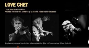 L’appuntamento, davvero di notevole caratura, avrà inizio alle ore 19:15 con Luca Marianini Trio ‘Love Chet’, composto da Luca Marianini (tromba), Andrea Mucciarelli (chitarra) e Giacomo Rossi (contrabbasso) con un viaggio all’interno di quel vero e proprio universo musicale rappresentato dalla prolifica produzione di Chet Baker.