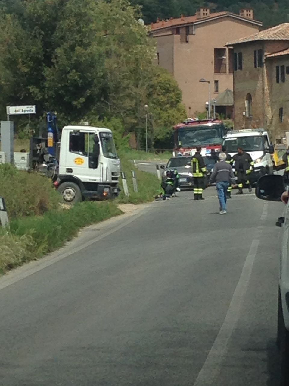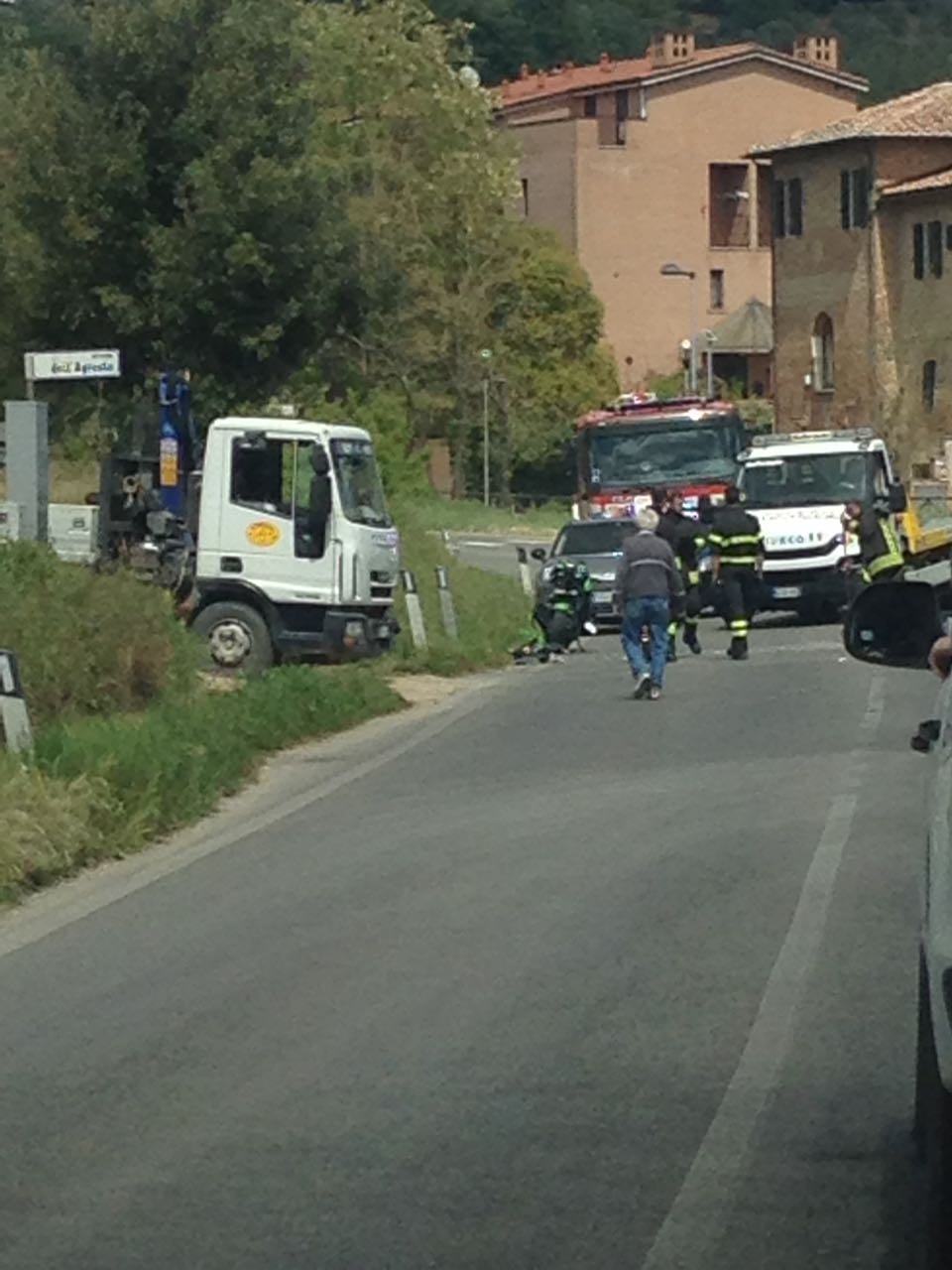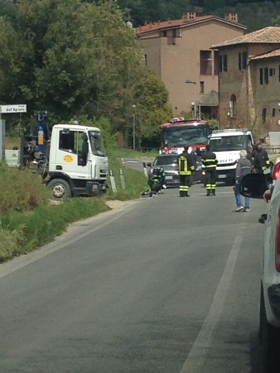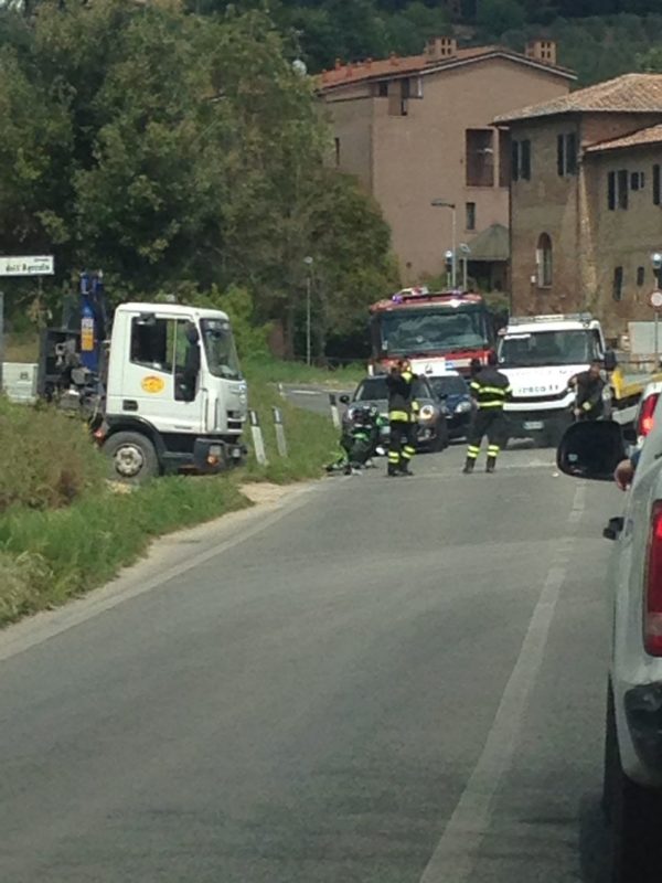Scontro tra una moto Kavasaki condotta da un uomo di 44 anni, F.C., residente a Siena ed un autocarro a Pian delle Fornaci. Sul posto 118 e Vigili del fuoco. Il conducente della moto, un senese di 44 anni, è stato trasportato all’Ospedale Le Scotte di Siena in prognosi riservata. I rilievi sono stati effettuati dai carabinieri del Nucleo Radiomobile di Siena.