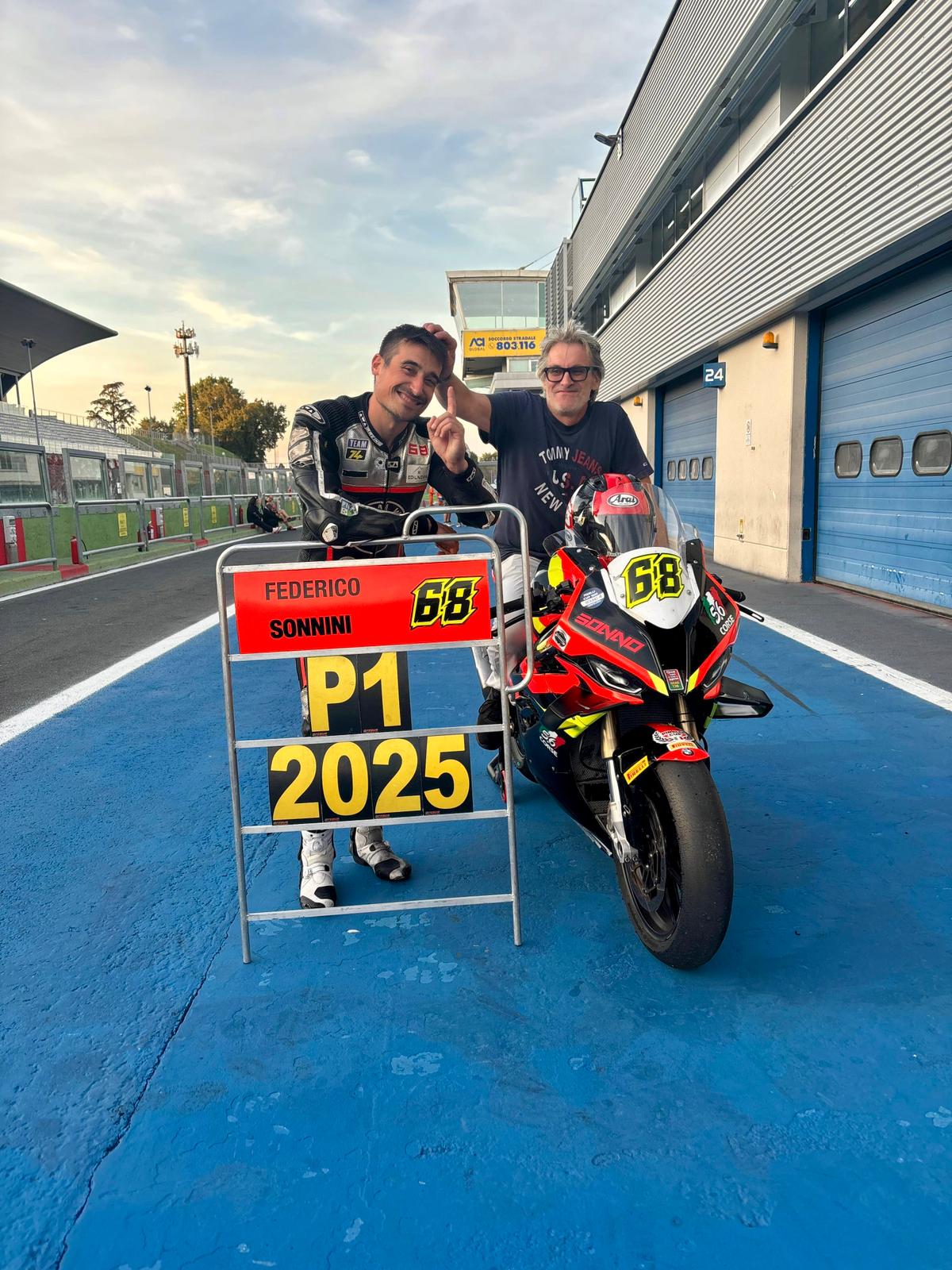 La passione per le due ruote, per Federico, nasce da lontano: anni di motocross, poi il passaggio alla velocità, fino all’approdo nel 2025 nel Trofeo Pirelli Cup, campionato riservato ai piloti non professionisti ma con un livello altissimo, organizzato dai fratelli Luca e Fabio Raggi, e che tocca i più prestigiosi circuiti italiani: Mugello, Misano, Cremona e Vallelunga.