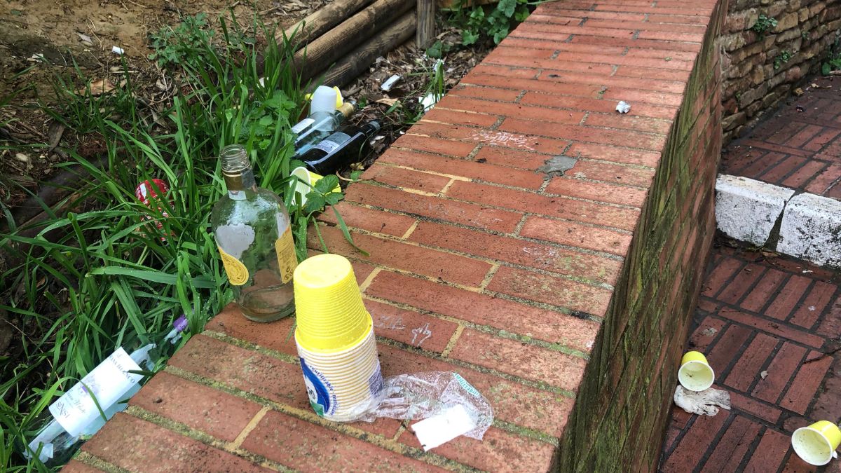 Bottiglie di alcolici e lattine a terra, cartacce, chiazze di vomito: uno spettacolo indecoroso, come testimoniano le foto di Radio Siena Tv.