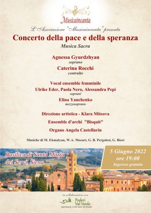 Domenica 5 giugno alle ore 19:00, nella splendida cornice della Basilica dei Servi, si terrà un concerto di musica sacra, intitolato “Concerto della pace e della speranza“, organizzato dall’associazione “Musicaincanta”.