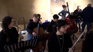 Non manca la musica all’interno della sala espositiva lungo La Corticella con parte dell’orchestra del Liceo Musicale Enea Silvio Piccolomini che fa da colonna sonora a questa giornata così densa di arte e sinergia tra l’Antico ‘Spedale e le scuole del territorio.