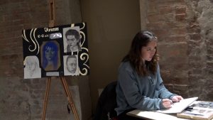 A fare ritratti lungo l’antica strada interna del Santa Maria della Scala sono gli studenti della 5 D del Liceo artistico Duccio di Buoninsegna di Siena, ideatori della sempre partecipatissima “Ritratti in Piazza”.