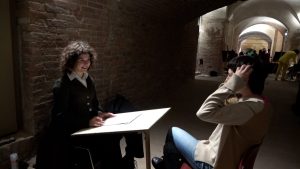 “È l’occasione per farsi ritrarre. Anzi, invito tutti coloro che hanno voglia anche di portare una foto per regalare un ritratto a parenti e amici – lancia l’iniziativa la professoressa Alice Leonini dell’Istituto artistico Duccio di Buoninsegna -. Questa è l’occasione giusta perché ricordiamo che i ritrattisti sono gli studenti del Liceo artistico di Siena, sono la 5 B, sono coloro che hanno inventato Ritratti in Piazza, quindi l’hanno in qualche modo portato al vaglio della città e dei turisti nel mese di maggio. Questa è l’edizione invernale quindi sono sempre più maturi come artisti e quindi le loro abilità crescono notevolmente rispetto allo scorso anno e diventa l’occasione per avere una piccola opera d’arte da regalare in occasione delle feste”.