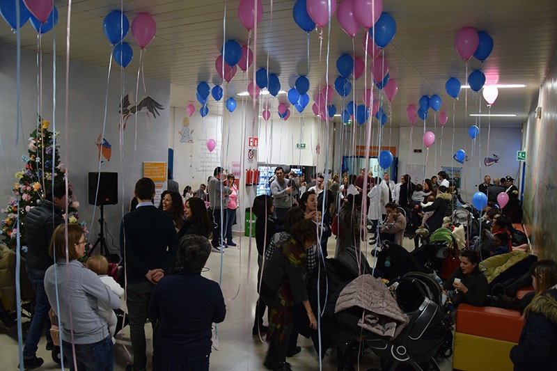 Un caloroso abbraccio, per scambiarsi gli auguri di Natale insieme alle famiglie dei bambini nati a Siena nel 2018. È questo il significato della gioiosa festa che si è tenuta all’interno del Dipartimento Materno-Infantile dell’Azienda ospedaliero-universitaria Senese per celebrare tutti i bimbi nati al policlinico Santa Maria alle Scotte quest’anno. Grande ed entusiasta la partecipazione dei neo-genitori e di tutte famiglie. Più di 1000 i parti effettuati al policlinico senese nel 2018, circa 1100 i nuovi nati (compresi pertanto anche quelli da parti gemellari): “Si tratta di un dato assolutamente rilevante – commenta il professor Filiberto Maria Severi, direttore ff dell’UOC Ostetricia e Ginecologia -, non solo in linea con gli anni precedenti ma che supera il 2017 di alcune unità. È molto importante, per Siena e per la nostra struttura, confermarsi su questi standard, considerando il generale decremento delle nascite in Italia”. Presenti all’evento Valtere Giovannini, direttore generale dell’Aou Senese, Roberto Gusinu, direttore sanitario, e tutti i professionisti del Dipartimento Materno-Infantile, insieme a istituzioni, forze dell’ordine e volontariato.