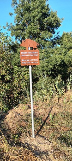 Andando al fiume Merse da Brenna – quello che negli anni ‘60 e ‘70 era famoso come il “mare di Brenna” – si incrociano, da qualche giorno, lungo la via alcuni cartelli artistici in corten realizzati e donati alla comunità dal fabbro sovicillino Alessio Trecci che ricordano ai fruitori dell’area che i rifiuti non vanno abbandonati ma riportati ai cassonetti, accessibili a tutti. Posizionati all’inizio della strada di Calcinari sono delle piccole opere d’arte che solo le mani di un artigiano già esperto, nonostante la giovane età, come Alessio Trecci potevano produrre.