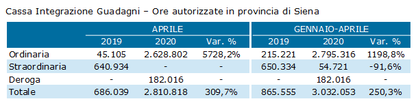 I dati della Cassa Integrazione di aprile in provincia di Siena: la camera di Commercio di Siena e Arezzo scatta una prima fotografia delle conseguenze occupazionali della crisi.