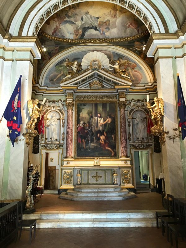 È stata ricollocata questa mattina, all’interno dell’Oratorio della Nobile Contrada del Nicchio, la tela realizzata nel 1825 da Luigi Boschi raffigurante San Gaetano Thiene perseguitato durante il sacco di Roma. Nel 2001, a causa di urgenti lavori di restauro all’interno dell’Oratorio, la tela fu tolta dall’altare trovando una diversa collocazione negli spazi della Contrada. A distanza di molti anni la Contrada, di concerto con la Soprintendenza, ha deciso di restaurare la preziosa tela grazie al lavoro di Francesca Celentano e Cecilia Caporali. Nell’aprile del 2019 all’interno della Chiesa di Santo Spirito, furono presentati al pubblico i lavori di restauro oramai conclusi. Adesso, la tela del pittore Luigi Boschi, ha trovato nuovamente la sua disposizione sull’altare maggiore, andando così ad impreziosire l’Oratorio eretto per volere dei contradaioli sul finire del 1600.