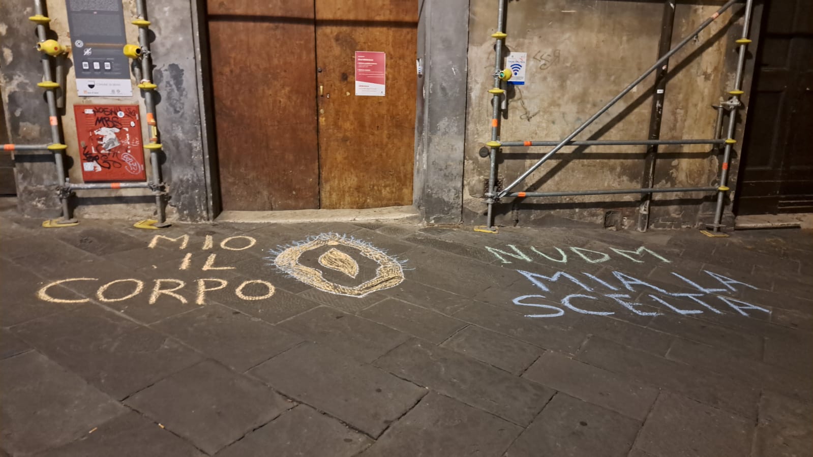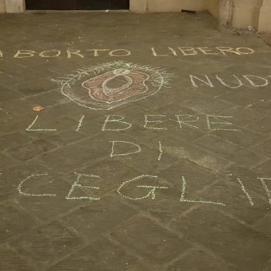 “Aborto libero, libere di scegliere”, “Il corpo è mio, decido io”, “Mio il corpo, mia la scelta”. Sono le scritte, accompagnate dal disegno di una vagina, che sono apparse stamani di fronte al Liceo Piccolomini, all’Artistico, agli Intronati, al San Niccolò, all’Istituto Caselli, alla facoltà di Lettere in Fieravecchia, all’ingresso del Rettorato dell’Università di Siena in San Vigilio, alla Corte dei Miracoli e in via della Sapienza. L’iniziativa è del movimento senese “Non una di meno”, per celebrare la ‘Giornata internazionale per l’aborto libero, sicuro e gratuito‘, che ricorre oggi, 28 settembre.