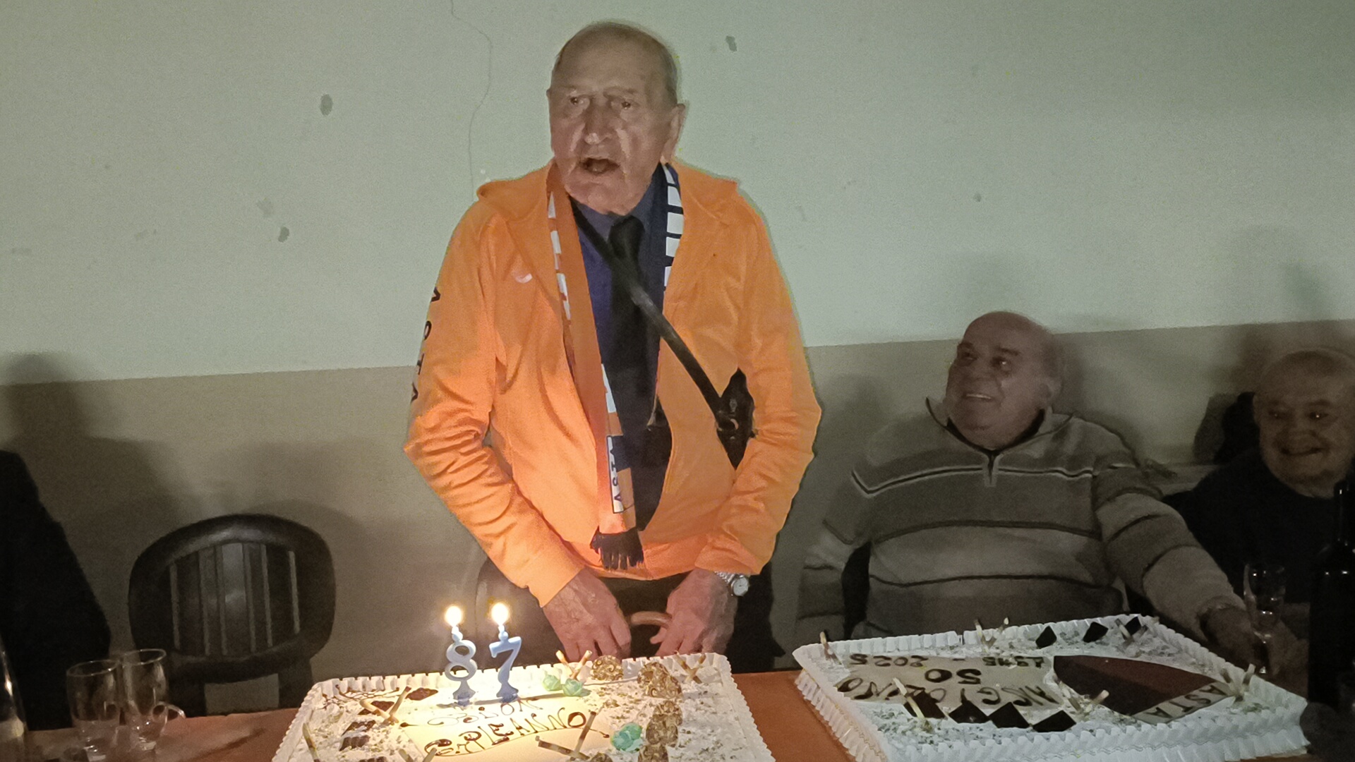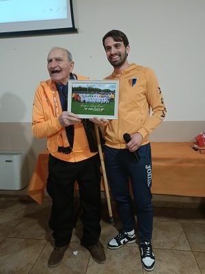 Tutta la famiglia arancioblè si è riunita a Castelnuovo Scalo, dove si sono tenuti i festeggiamenti per i suoi 87 anni e per le nozze d’oro con la società di Taverne d’Arbia. Angiolino ha ricevuto anche gli auguri di importanti figure istituzionali, quali il presidente della Lega Nazionale Dilettanti Toscana Paolo Mangini, l’assessore allo sport del Comune di Siena Lorenzo Lorè e l’onorevole Francesco Michelotti.