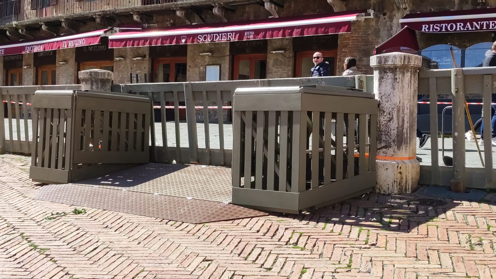 La sicurezza è la priorità per pensare di poter tornare a vedere dal vivo il Palio. I problemi di capienza della Piazza erano già sul tavolo dopo i fatti di Torino, tanto che nel 2019 il comune dovette inserire dei nuovi varchi di sicurezza per l’uscita dalla conchiglia. Varchi messi a punto dalla facoltà di ingegneria della Sapienza di Roma e dalla ditta Eps, con un sistema di sbloccaggio manuale molto efficiente. Il progetto, partito da lontano è stato studiato per poter portare a 18,600 spettatori la capienza tra conchiglia e palchi ed avere l’assenso del comitato per i pubblici spettacoli
