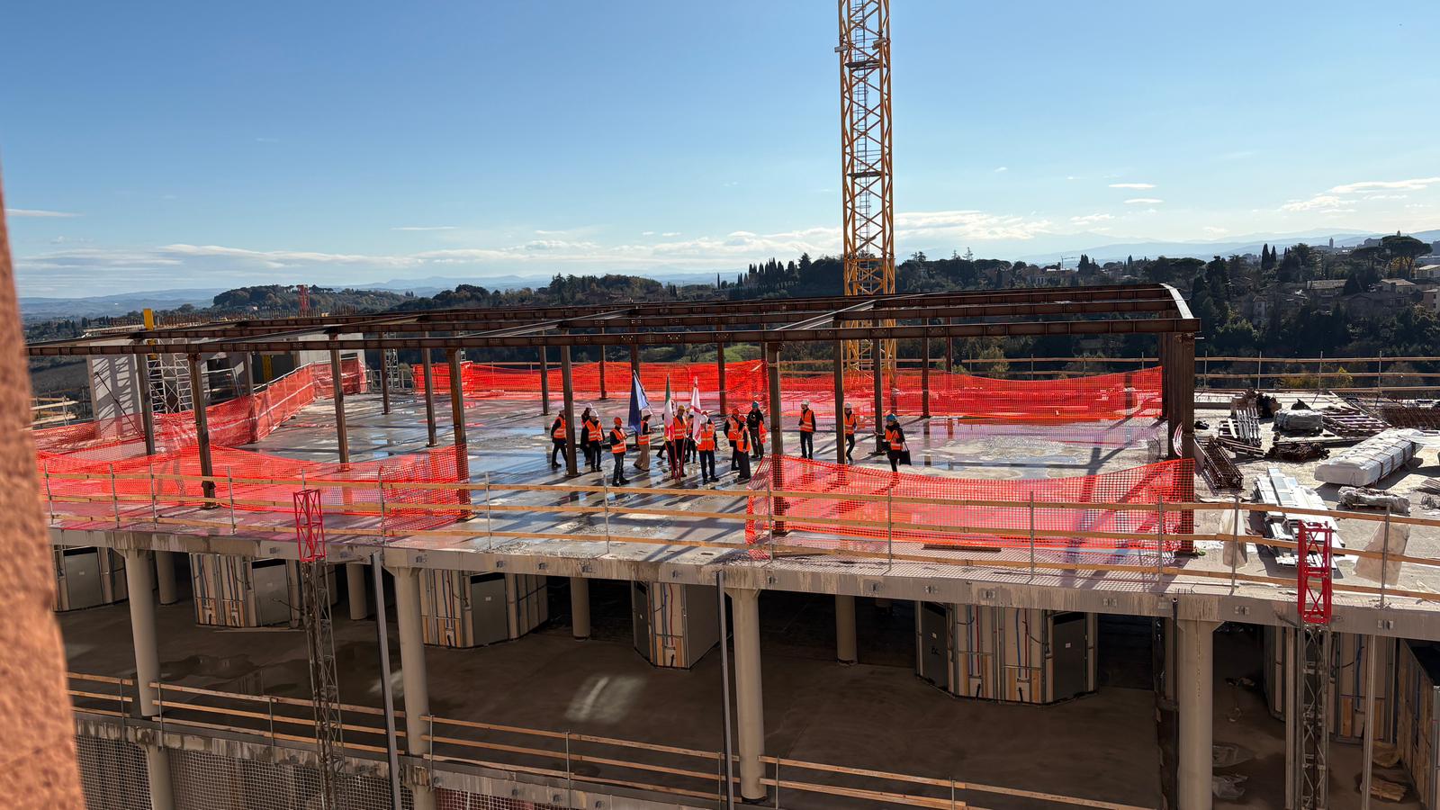 Un tassello decisivo per il futuro dell’ospedale Santa Maria alle Scotte di Siena. Questa mattina il presidente della Regione Toscana Eugenio Giani e la nuova assessora regionale alla Sanità, al Diritto alla Salute e alle Politiche sociali, Monia Monni, insieme al suo predecessore Simone Bezzini, oggi capogruppo del PD in consiglio regionale e all’assessore all’urbanistica di Siena Michele Capitani hanno visitato il cantiere del cosiddetto Lotto Volano, dove è stato da poco completato l’ultimo piano dell’edificio, segnando un avanzamento cruciale del masterplan complessivo da 129 milioni di euro.