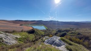 “Ci opporremo con ogni mezzo a questo progetto che andrebbe a deturpare irrimediabilmente il nostro paesaggio” aggiunge Riccardo Ricci, agricoltore da generazioni che vedrebbe sorgere, a sua insaputa, un aerogeneratore proprio nel suo terreno. “Quando l’ho saputo non volevo crederci, appena ho realizzato mi sono sentito violentato” conclude il presidente del comitato. Come lui tanti altri cittadini che qui vivono dopo aver ereditato una terra che, oltre a vantare scorci mozzafiato, nell’ultimo secolo ha visto anche tanta immigrazione sarda dedita prima alla pastorizia, poi all’agricoltura di qualità e, infine, al turismo lento. In queste strade bianche, circondate da calanchi e biancane che cambiano colori e conformazioni con l’intercedere delle stagioni, si perdono i percorsi dei pellegrini che attraversano l’antica Via Lauretana e si perdono le centinaia di turisti o semplici amanti della bicicletta.