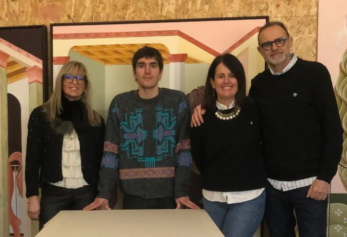 L’artista ha ricevuto seta e telaio nel suo studio a Torino da parte di alcuni dipendenti dell’amministrazione comunale.