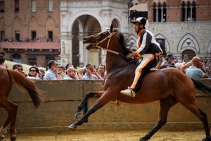 La Contrada della Lupa ha vinto la seconda prova del Palio del 2 luglio 2024, con Andrea Coghe detto Tempesta sull’esordiente Zenios. L’allineamento tra i canapi si trova subito e si parte velocemente. Tutti pronti in partenza, fiancano tutti insieme, la Giraffa, l’Oca, l’Onda e il Bruco davanti a tutti. E’ la Pantera, partita un po’ più alta, a prendere la testa, Bellocchio sollecita Viso d’Angelo e galoppa forte un giro, alle sue spalle il Bruco e la Lupa. La Pantera rallenta e lascia la testa alla Lupa, con Tempesta che prova il suo Zenios, e va in solitudine a vincere la prova. Brivido al terzo Casato con il fantino che sfiora il colonnino, senza nessuna conseguenza.