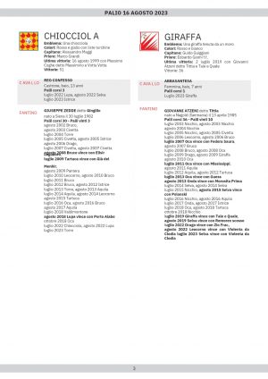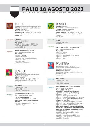 Nessun colpo di scena alla tradizionale segnatura dei fantini. Tutti gli occhi erano puntati sulla contrada della Pantera, dopo la caduta di Scompiglio da Anda e Bola in occasione della partenza della provaccia. Ma il capitano ha fugato ogni dubbio e Jonatan Bartoletti è stato ufficialmente segnato.