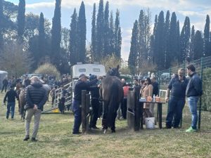 Tanto pubblico e tanti cavalli alla prima giornata di addestramenti per i cavalli iscritti all’Albo sulla pista di Mociano. Non mancava nessuno all’appello, tra capitani, mangini, barbareschi, semplici appassionati. E poi i cavalli vincitori di Palio: Diodoro, Anda e Bola e Zio Frac, quindi i fantini. A cavallo i meno famosi, a piedi tra i van a gestire le pubbliche relazioni, i big. Fa eccezione solo Jonatan Bartoletti detto Scompiglio che, come sempre, preferisce montare da solo i suoi cavalli. Sei le batterie in programma con ben 42 cavalli al via agli ordini del mossiere Andrea Calamassi.