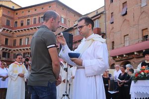 “C’è una passione riconosciuta da tutti in tutto il mondo, che certo fa onore a tutto il popolo di Siena e non solo. Appassionarsi alle scelte della vita come il Palio appassiona in questi luoghi e contesti, credo sia fondamentale”. Questo è uno dei passaggi dell’omelia del cardinale Augusto Paolo Lojudice durante la messa del fantino presso la cappella del Palazzo comunale in Piazza del Campo.