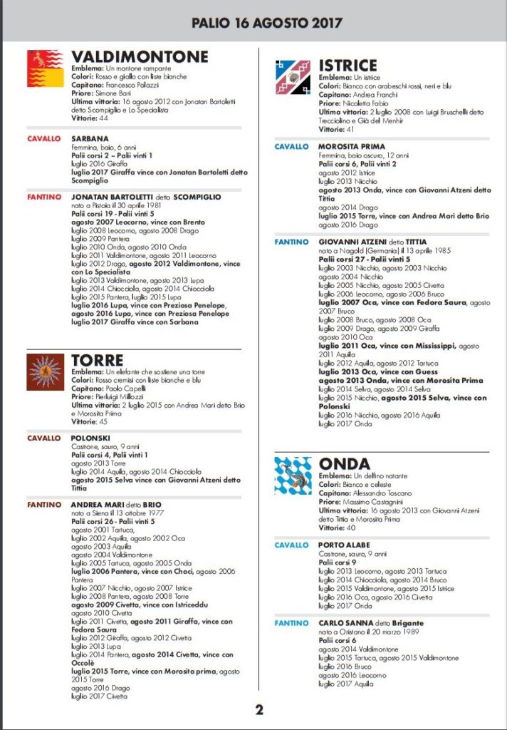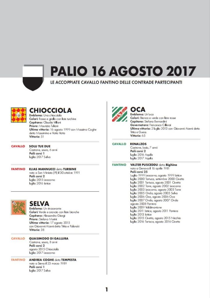 Palio, conto alla rovescia - Le accoppiate definitive dopo la segnatura