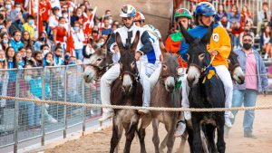 A Torrita di Siena è ufficialmente iniziata la 65esima edizione del Palio dei Somari, a sancirne l’avvio la cerimonia di estrazione delle batterie di qualificazione per la corsa che si svolgerà domenica 29 maggio alle ore 16.00, nel campo di gara allestito presso il Gioco del Pallone. Mentre tra le vie del centro storico si svolgeva il Mercato Medievale de La Nencia, con l’esposizione di manufatti artigianali, all’interno della sala consiliare del palazzo comunale torritese i presidenti delle otto Contrade, alla presenza del sindaco Giacomo Grazi e del presidente dell’Associazione Sagra San Giuseppe Yuri Cardini, hanno estratto i bussolotti degli abbinamenti tra le otto contrade che andranno a comporre la fase eliminatoria della Corsa.